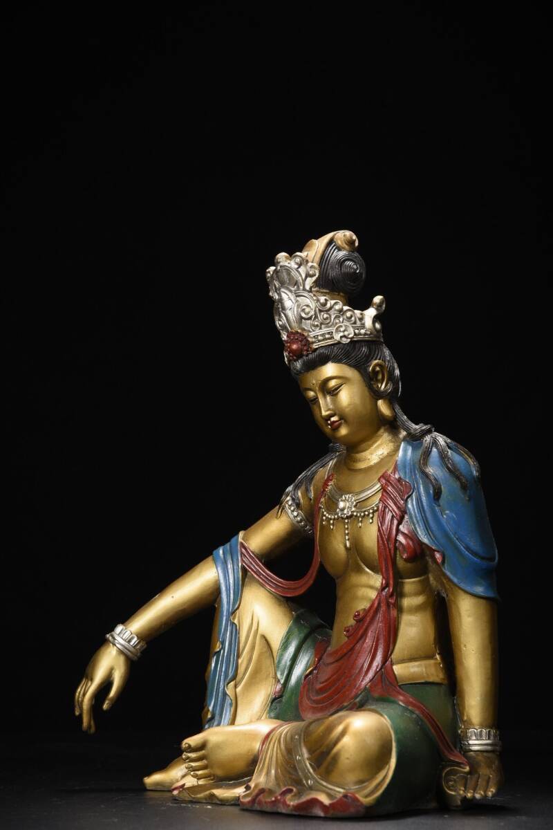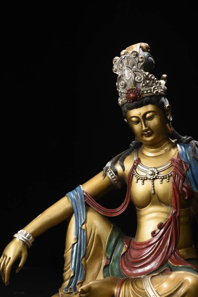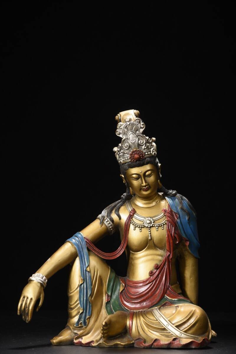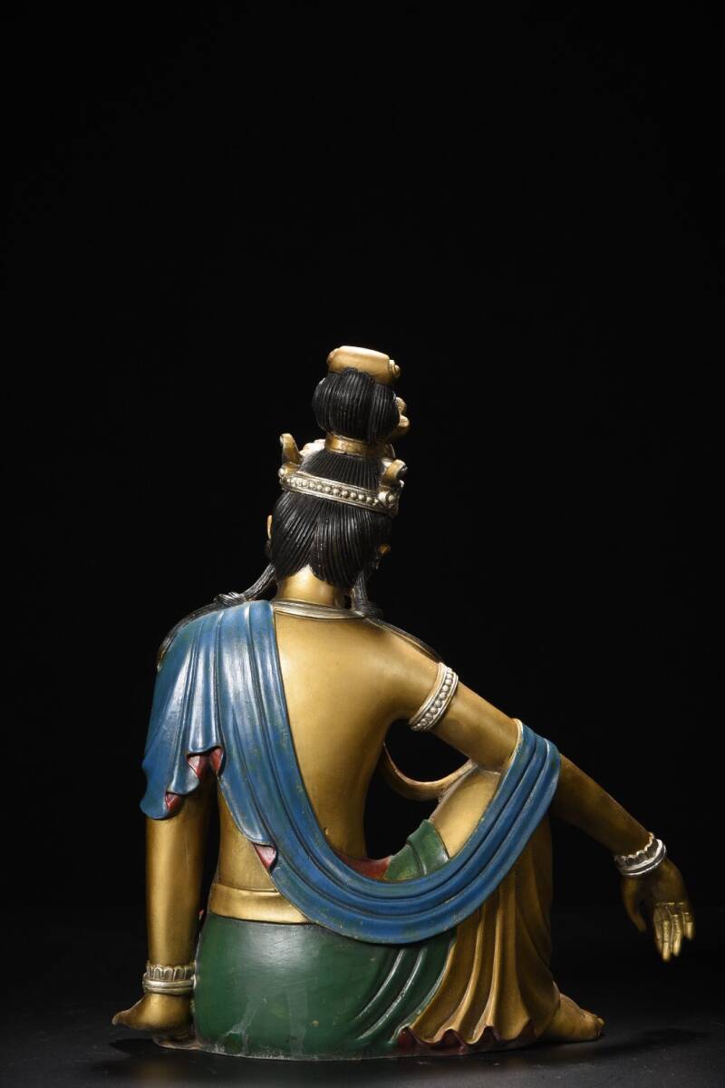 【蔵友館蔵品・銅製・金鍍・彩繪・自在觀音像・仏像・宗教・仏教古美術・供養品】・古董品・中国古玩・時代物・希少珍品・中国時代美術