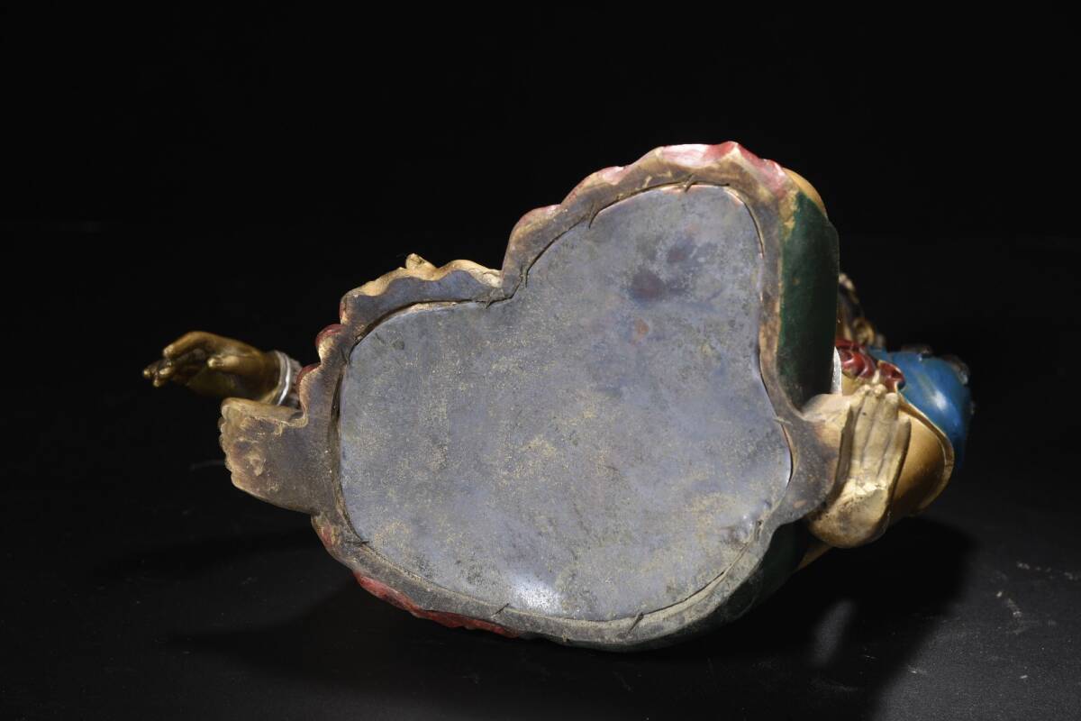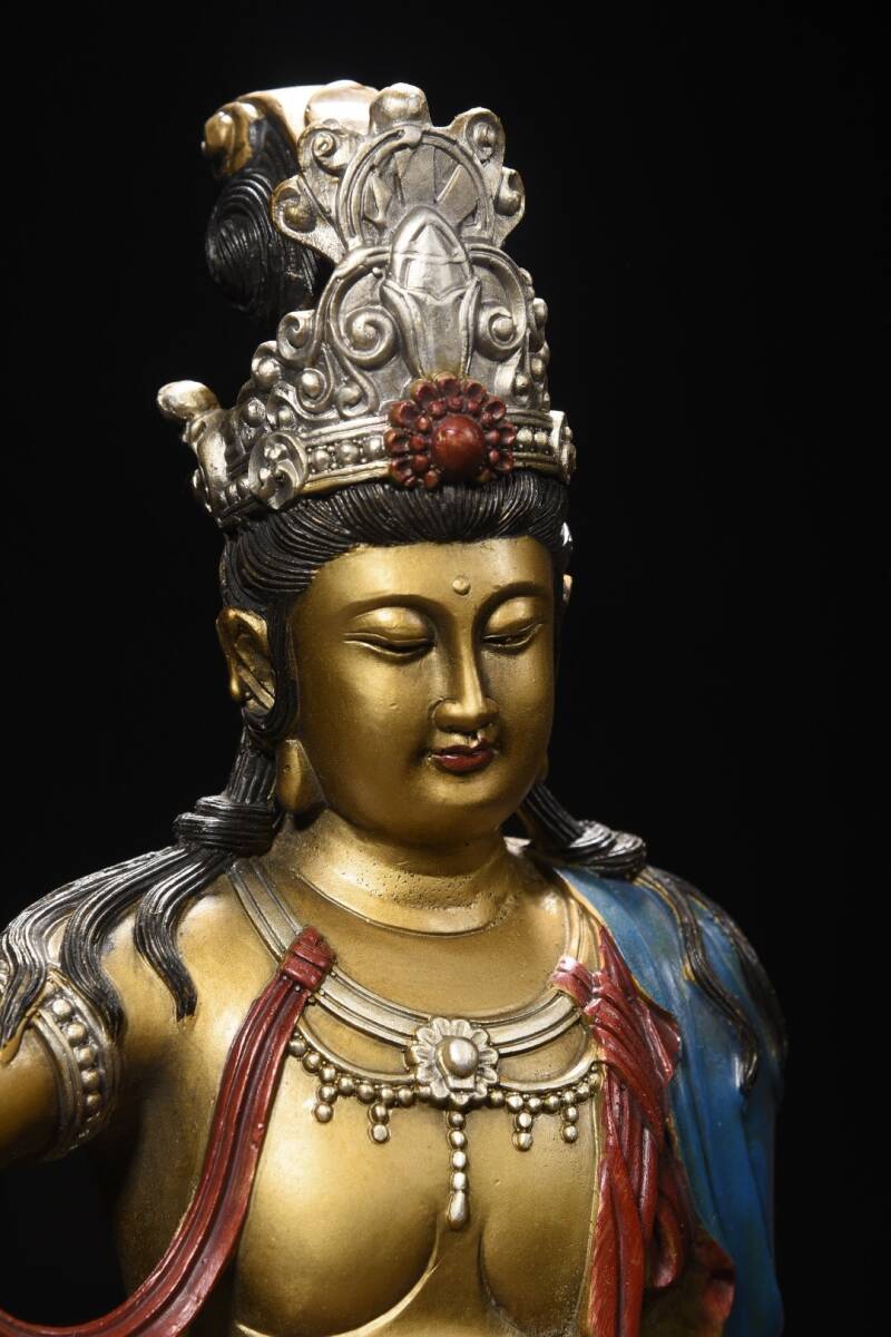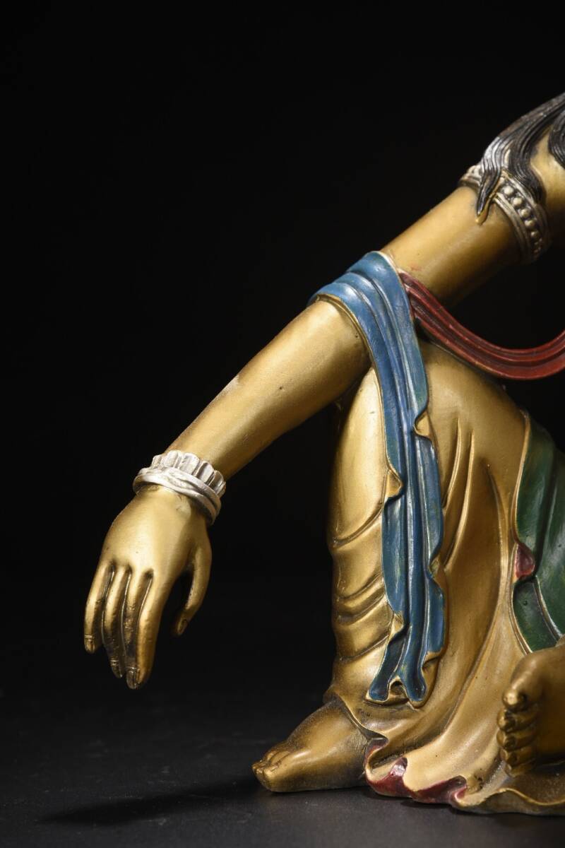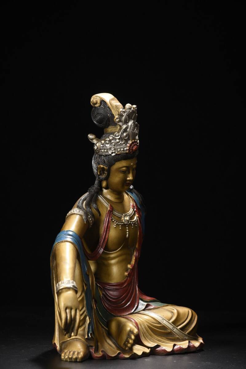 【蔵友館蔵品・銅製・金鍍・彩繪・自在觀音像・仏像・宗教・仏教古美術・供養品】・古董品・中国古玩・時代物・希少珍品・中国時代美術