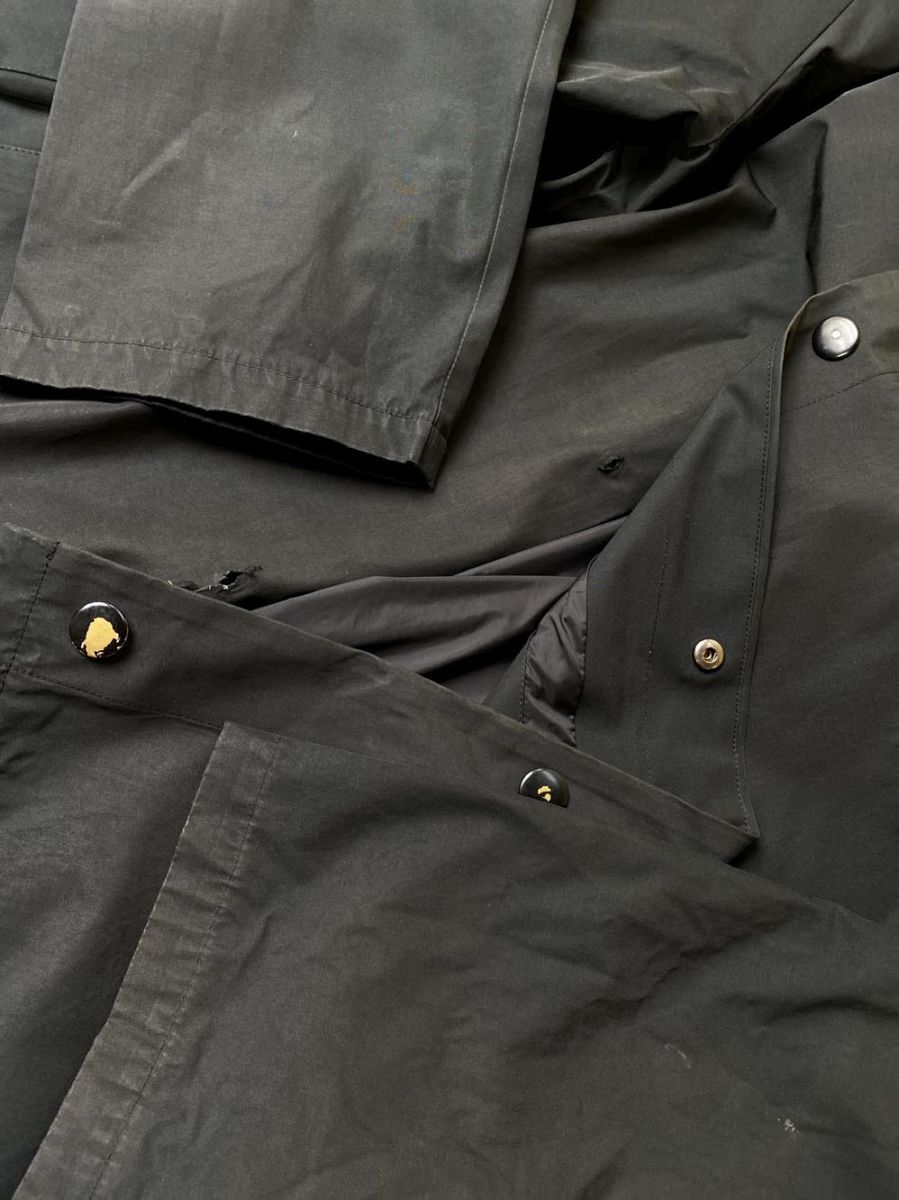| 商品の状態 | 第3、4ボタンが壊れており、ボタンの塗装が剥げている箇所があります。また、前身ごろ、左肩、後ろ下部、袖、裾に白汚れがあります。 使用感がございますが、まだまだ活躍してくれると思います。 (当方管理番号:syfi030765-m) | ||||||||||
