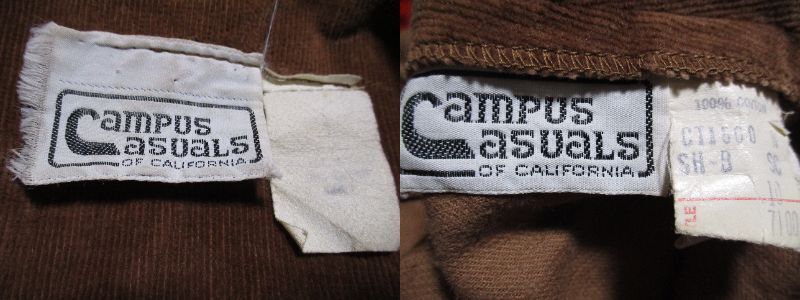 Campus Casuals キャンパス ベロア コーデュロイ ジャケット パンツ セットアップ スーツ ツーピース 70s 1970s ビンテージ vintage