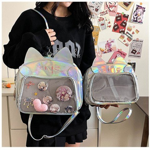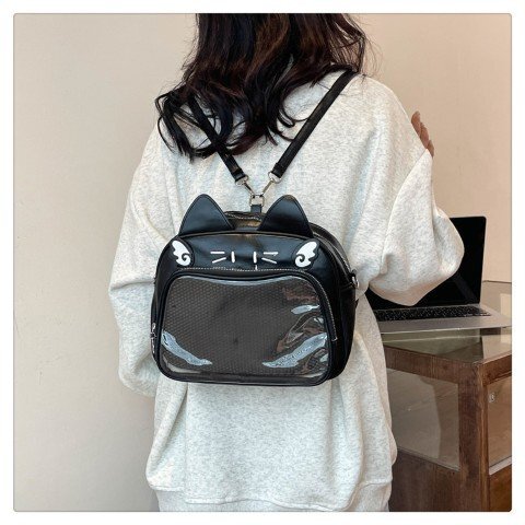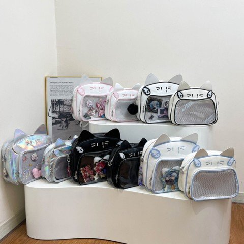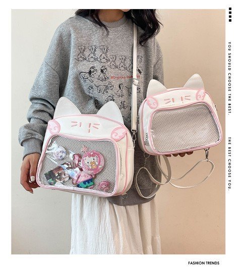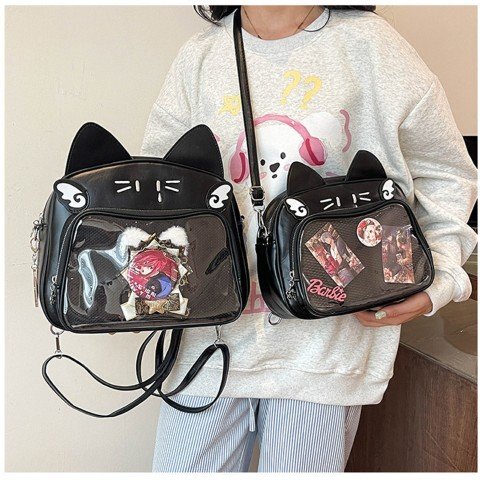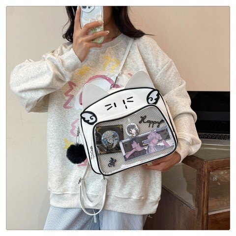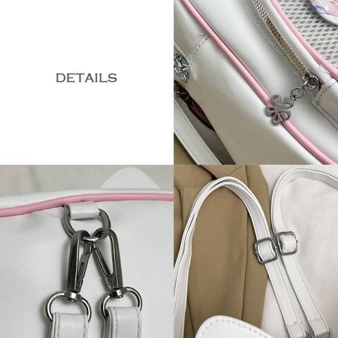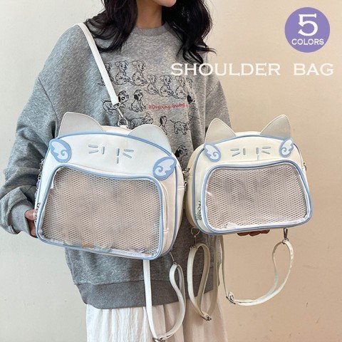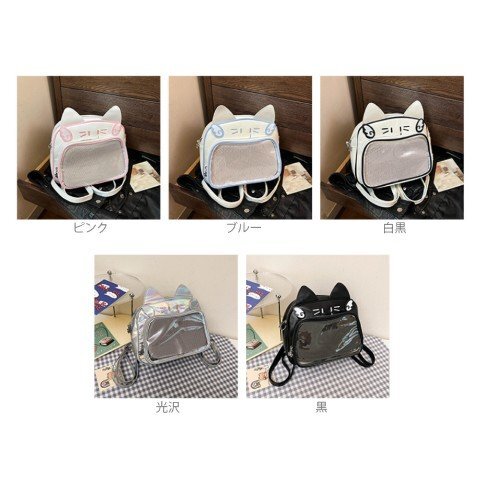 ・フロントのクリアポケットに写真や缶バッチキーホルダーなどお好きなものを入れて、自分だけのバッグを完成させることができます。