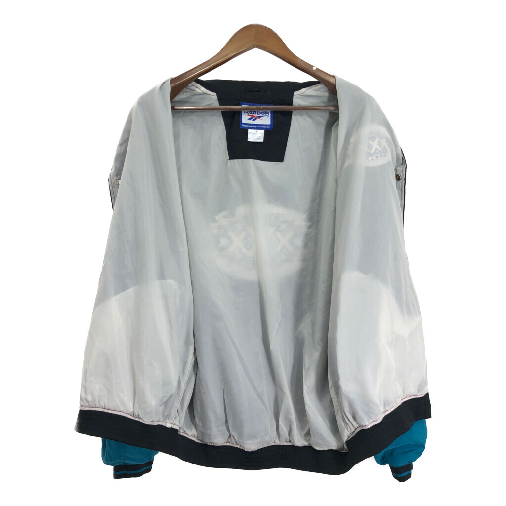 【商品管理番号】 R2938 【ブランド】 Reebok/リーボック 【サイズ】 XL 【実寸サイズ】 肩幅:約64cm 着丈:約70cm 身幅:約71cm 袖丈:約63cm 【主な素材】 表地 : ポリエステル 裏地 : 13848 【色】 ブラック 【仕様】 90年代 プロチーム、アメフト NFL スーパーボウル 1996 【状態】 |