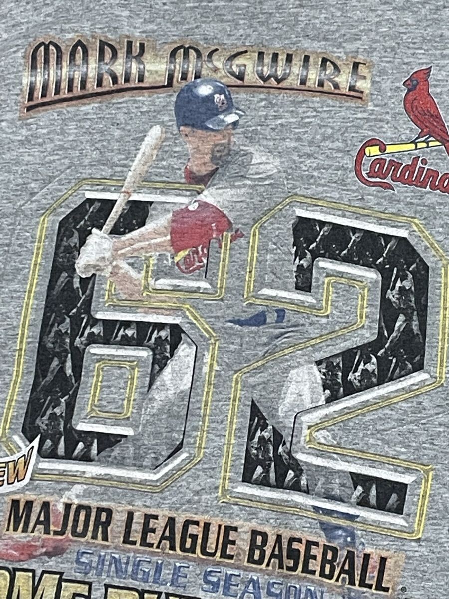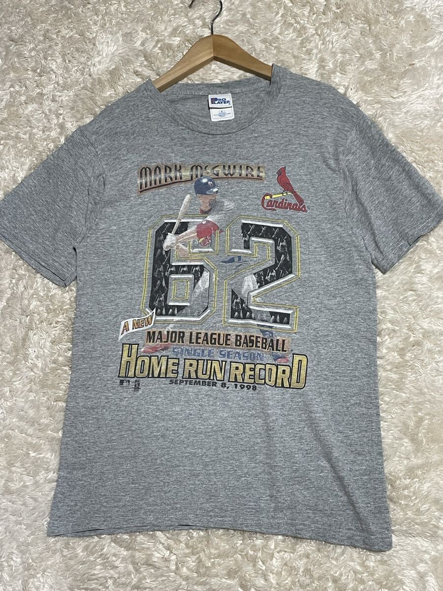 ☆ PRO PLAYER製 ☆ size M ☆ MARK McGWIRE MLB CARDINALS マーク マグワイア 半袖 Tシャツ TEE 霜降 GRY 62号 ホームランレコード