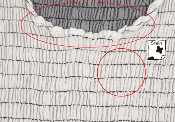 コンディション | 首元に汚れ、前身頃にシミがあります(写真参照)その他目立ったシミ、汚れ、ほつれ等なくいい状態です。クリーニング済み ※商品の詳細写真はこちらよりご確認頂けます。 | ||||||||