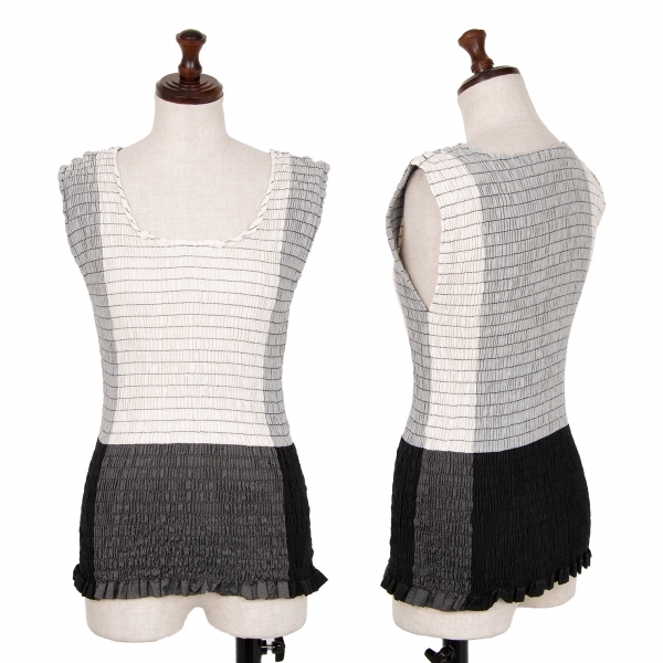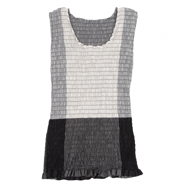 イッセイミヤケISSEY MIYAKE シャーリングモノクロパネルノースリーブ オフグレー2 |