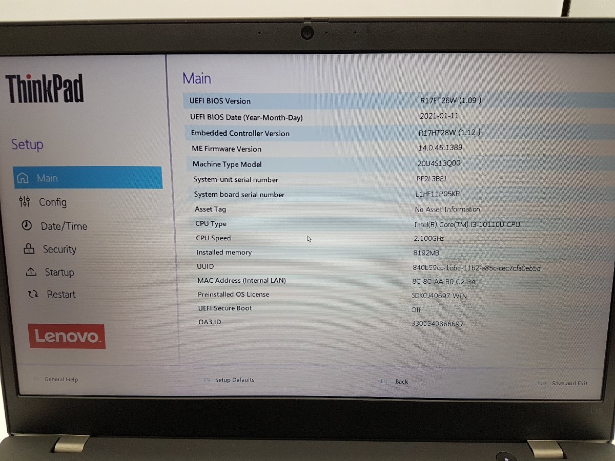 | 型番 | ThinkPad L15 20U4S13Q00 |