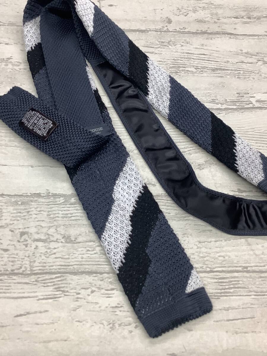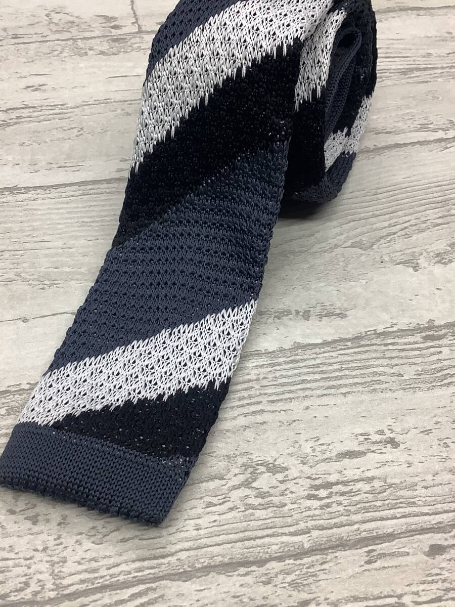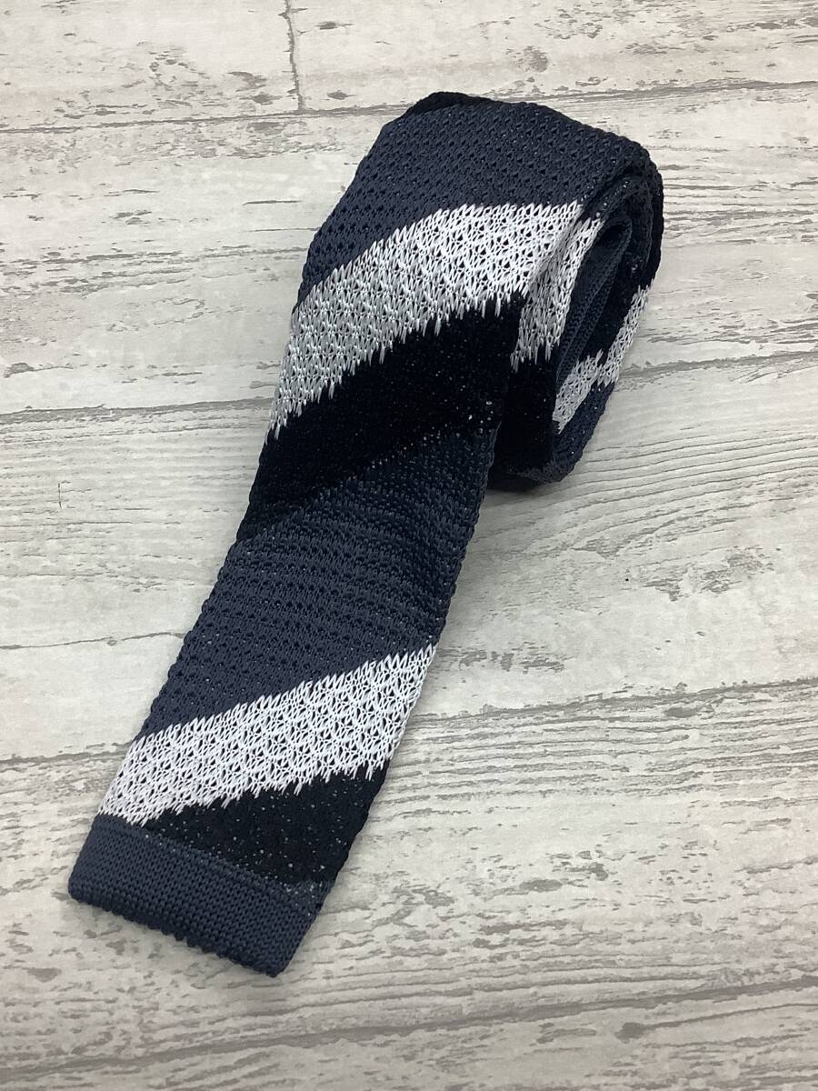 新作 新品未使用  ニットタイ 珍しいストライプ柄 黒グレー白 大剣6cm お買い得サービス