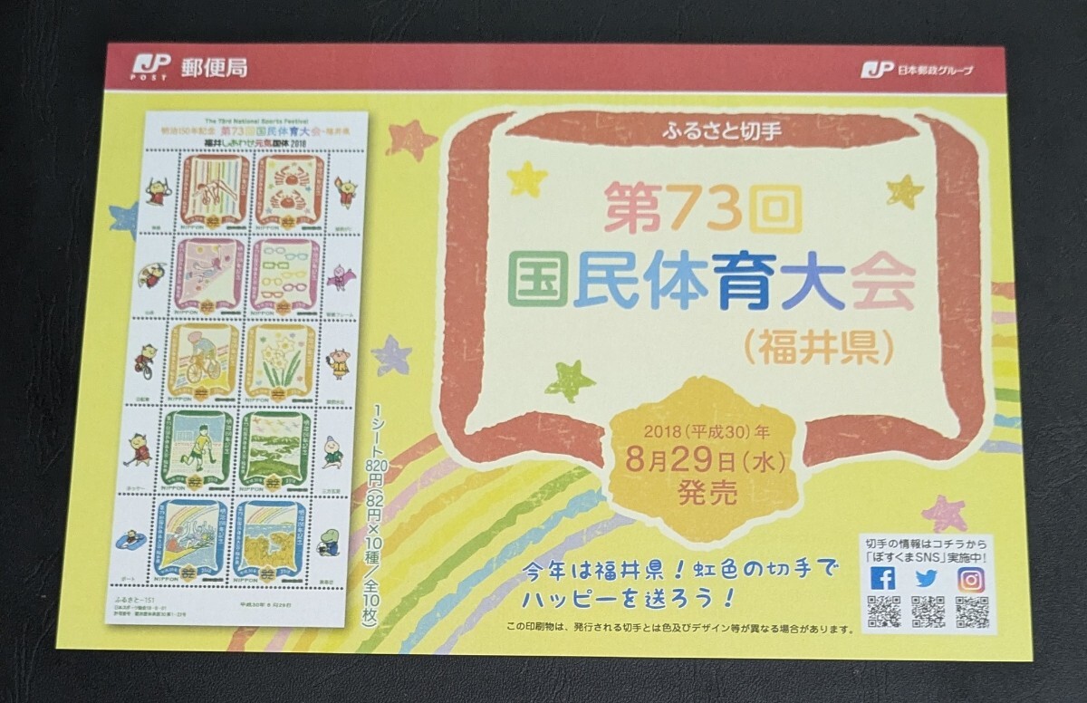2018年・ふるさと切手-第73回国民体育大会シート(福井)解説書付