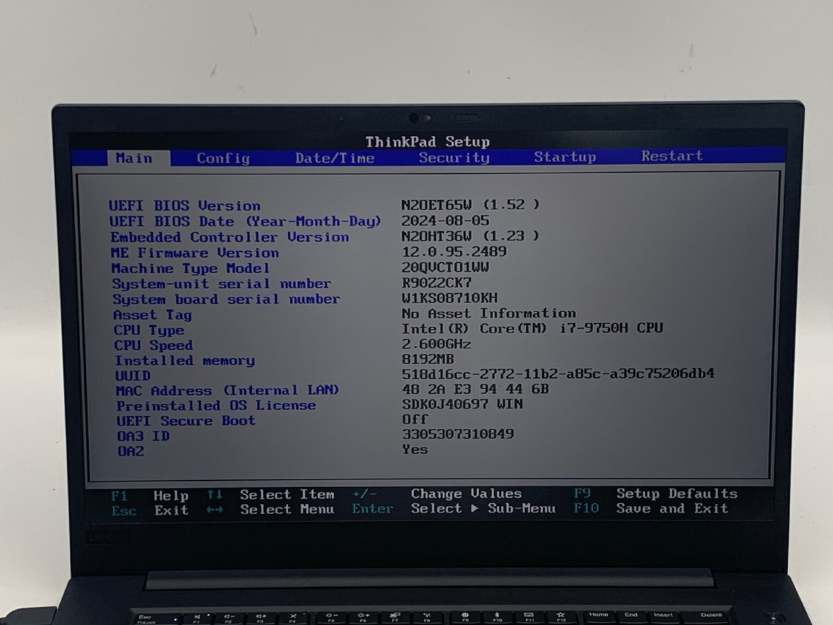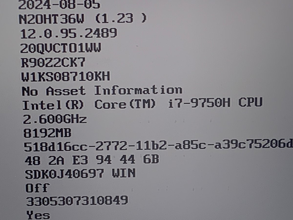 | CPU | Corei7-9750H | コアシール (プロダクトシール) |