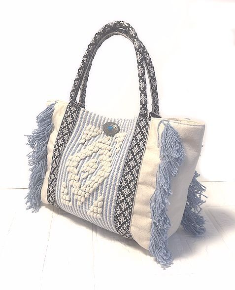 季節感を問わないデザインの織りのトートバッグ。上品なフリンジにコンチョがアクセントに。
