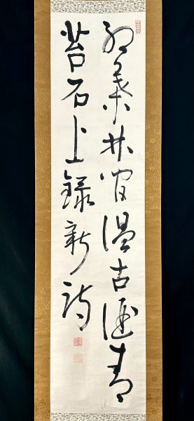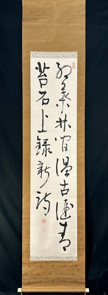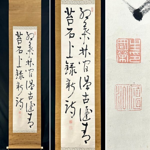 s66H09【真作】若生国栄「二行書」掛軸 紙本 肉筆 書 曹洞宗円通寺第43世 永平寺監院 大沼枕山に師事 兵庫の人