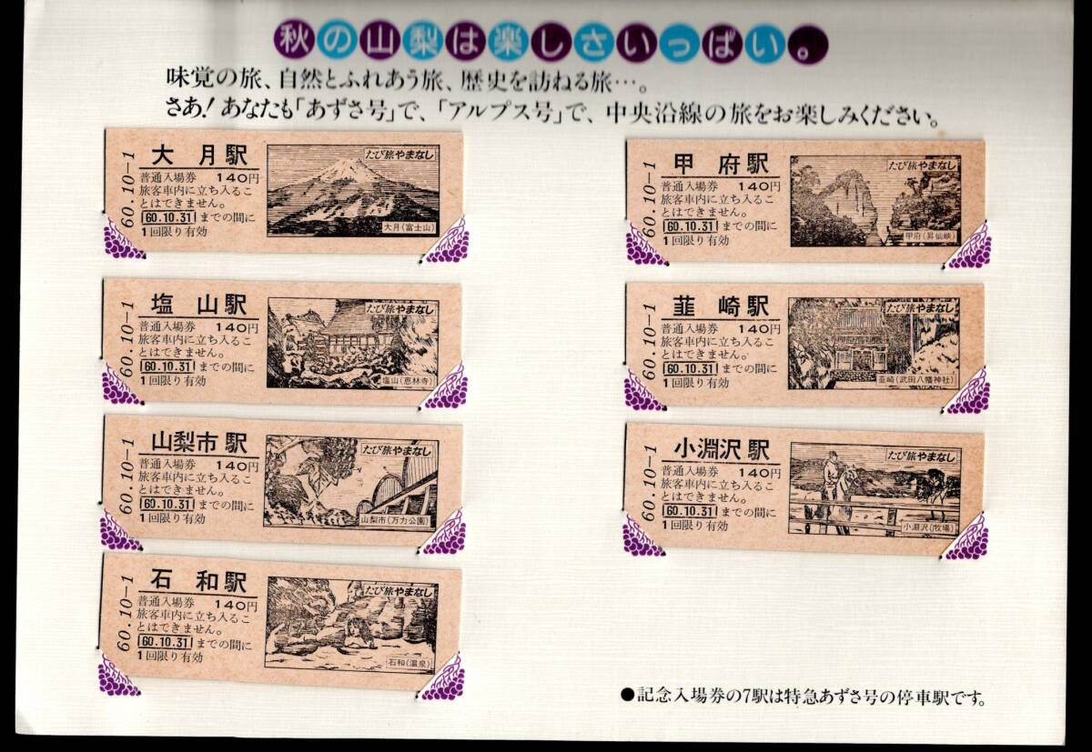 ●昭和60年 たび旅やまなし記念入場券(東京西局)