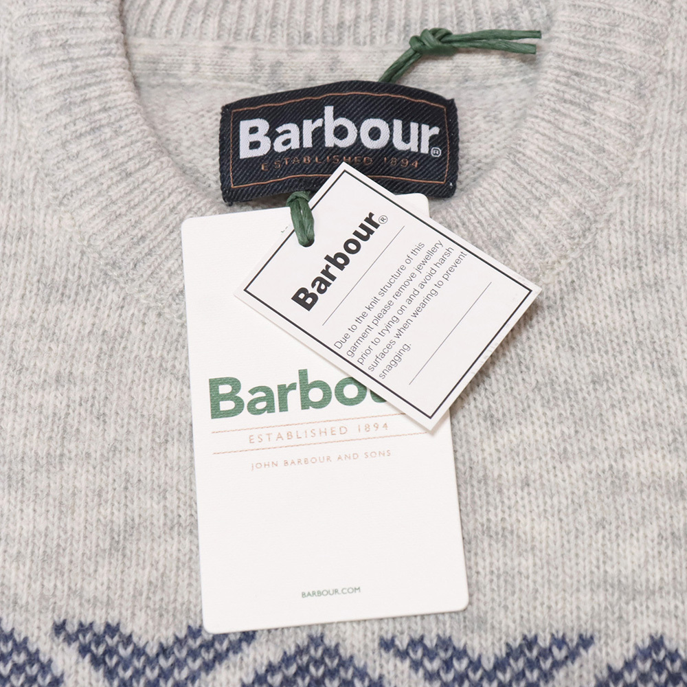 24秋冬/Barbour/Mサイズ/ウール100%ニット MKN1342GY15 ジャガード ノルディック調 レトロ バブアー 新品/グレー/mb142/
