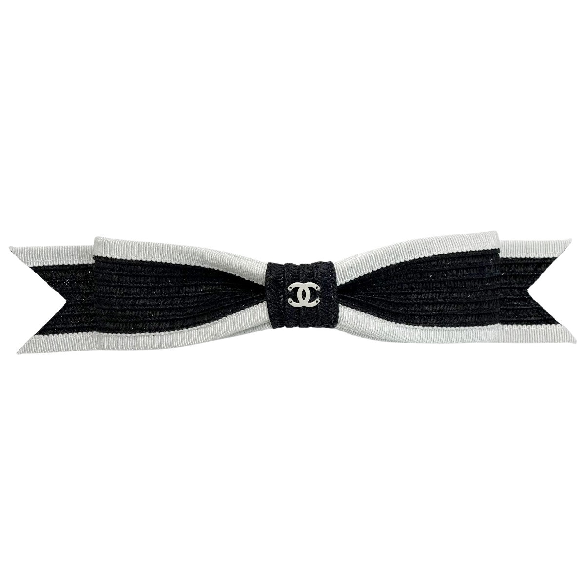 ☆☆ CHANEL シャネル リボン ブラック×ホワイト ヘアアクセサリー バレッタ レディース やや傷や汚れあり