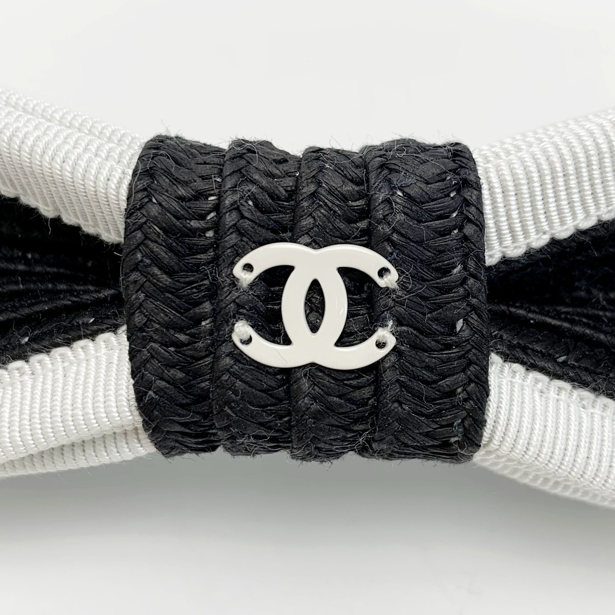 【商品名】中古 CHANEL シャネル リボン ブラック×ホワイト ヘアアクセサリー バレッタ レディース やや傷や汚れあり