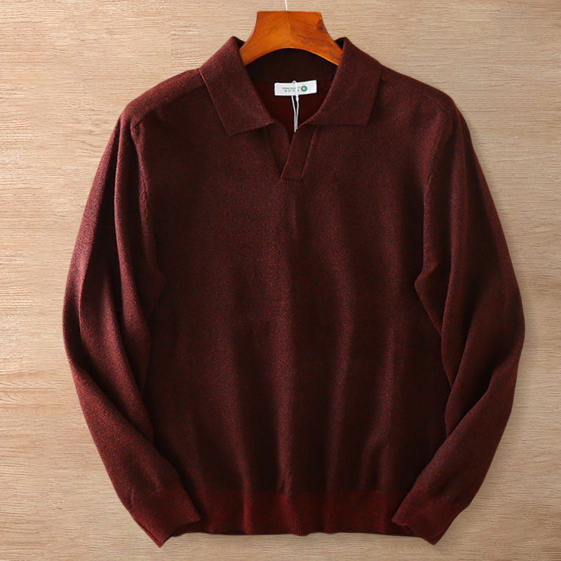 Y6447-L ワインレッド 新品 ニット セーター ウール混 スキッパー ふんわり ウォッシュ加工 暖かさ 秋冬 厚手 ビジネス メンズ トップス