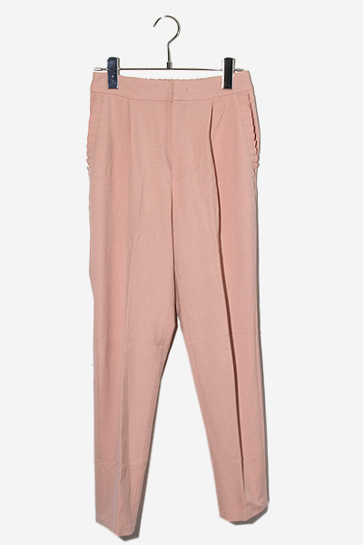 【備考】愛らしいポケットフリルがポイントの美シルエット裏起毛パンツ。 すっきりとした美しいテーパードシルエット。 バックウエストはゴム仕様なので心地よい着用感です。