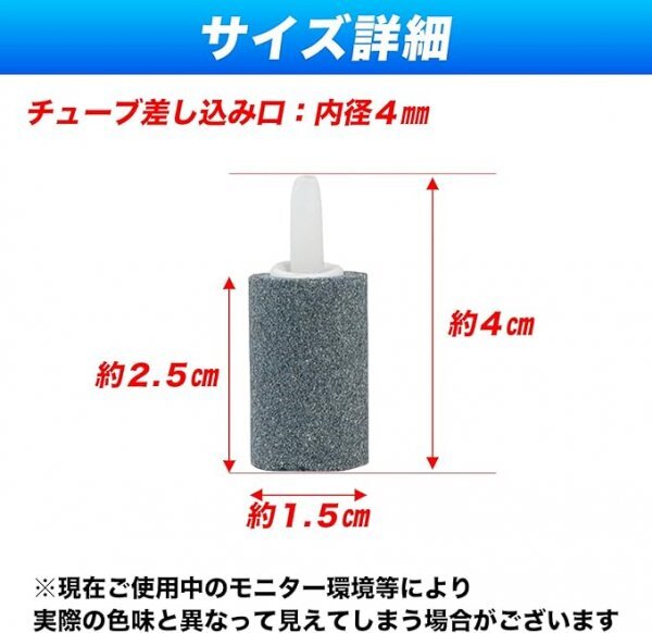 コンパクトで安定した設置が可能。サイズは高さ2.5cm×幅1.5cm、重さ8g。円筒形のデザインにより、水槽の底にしっかりと沈み、安定した泡の流れを実現します。設置後も動かず、効率的な酸素供給を保ちます。お手入れ簡単で長持ち。