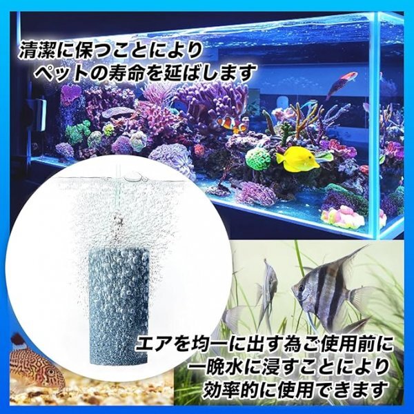 水槽の生命力を引き出す!魚たちに新鮮な酸素を!水槽の健康を守る高性能エアストーン。あなたの水槽に活力を与える、驚異的な高密度エアストーンシリンダーが登場!中程度の気泡で、驚くほどの酸素溶解度を実現。これにより水生生物はより元気に、健康的に過ごすことができます。