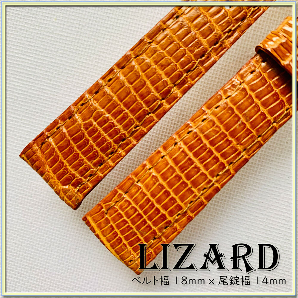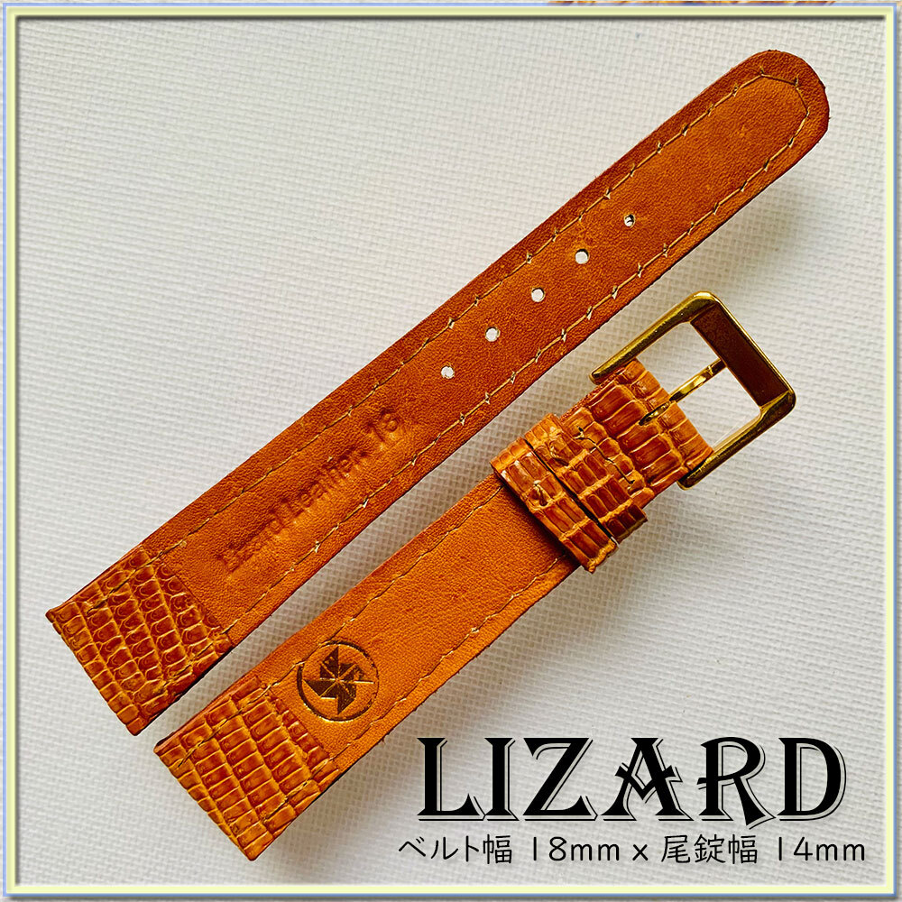 SALE!18mm リザード 本革 トカゲ革 高級ライン 1点物 別注 キャラメル CARAMEL 天然模様 時計ベルト HANDMADE GOLD BUCKLE バネ棒2本