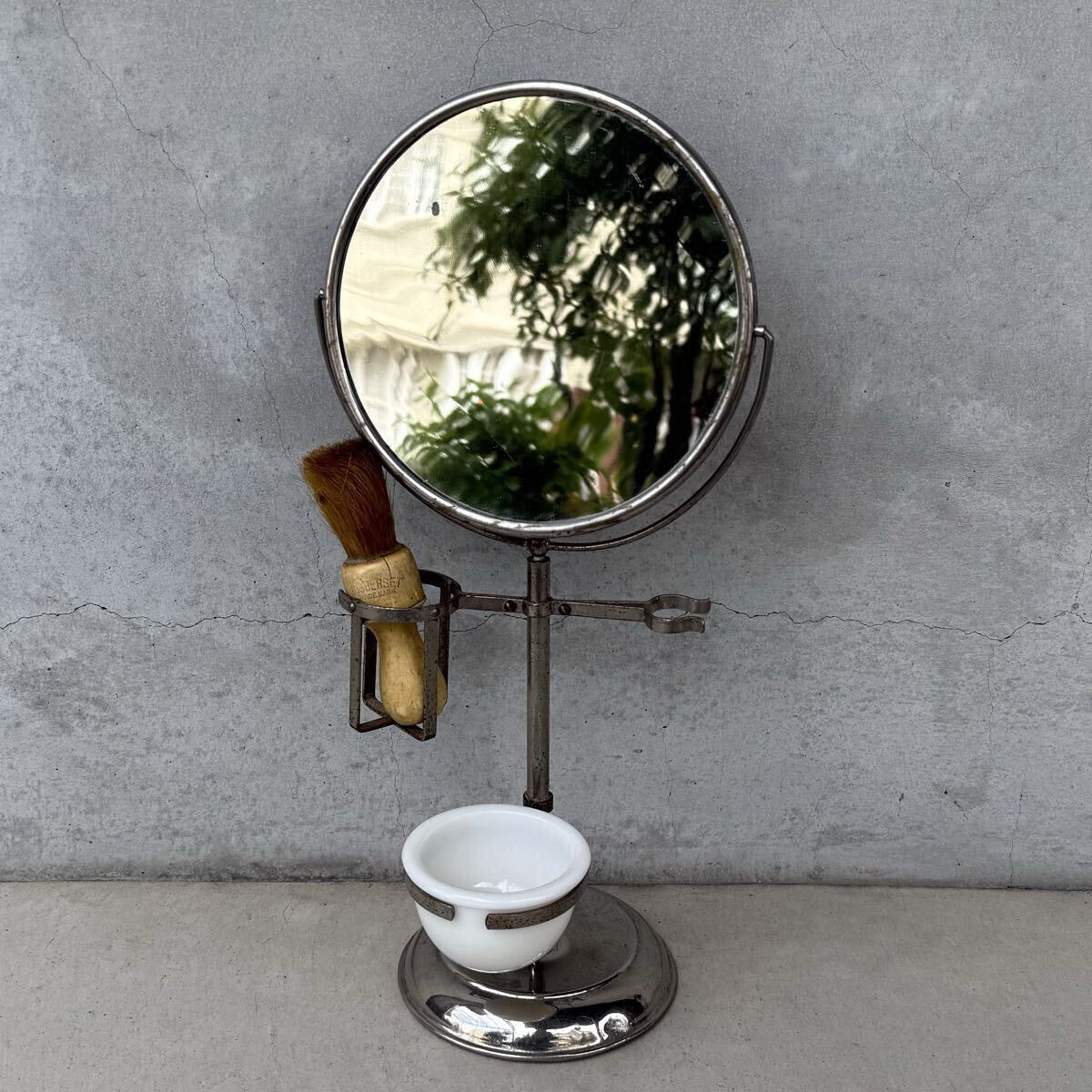 ヴィンテージ アンティーク スタンドミラー 鏡 卓上ミラー シェービングミラー / インテリア オブジェ 丸型 化粧 店舗什器 アメリカ