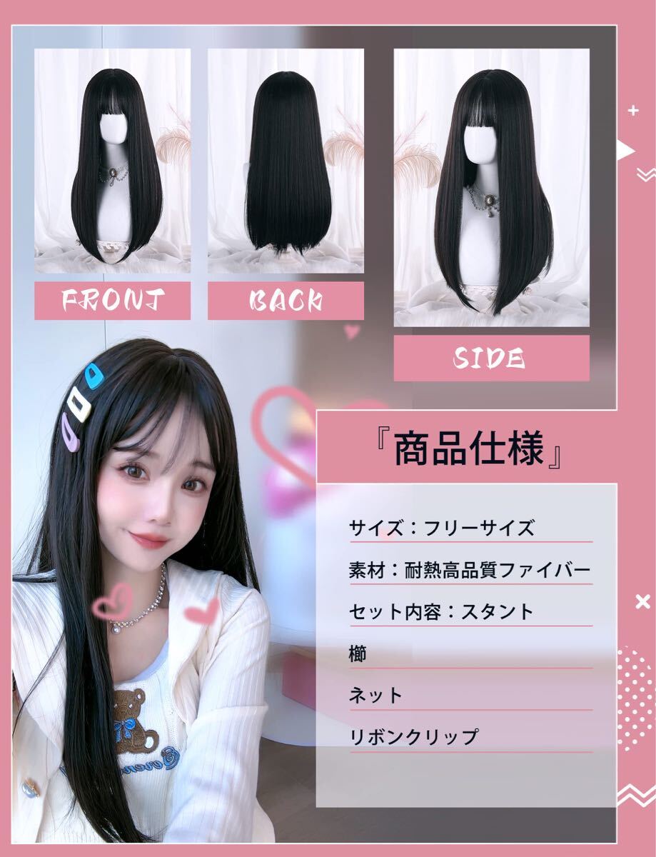 【Wig仕様】:フリーサイズ(アジャスターでサイズ調整可能) 。前髪:約12cm 後髪:約55cm、新品未使用。
