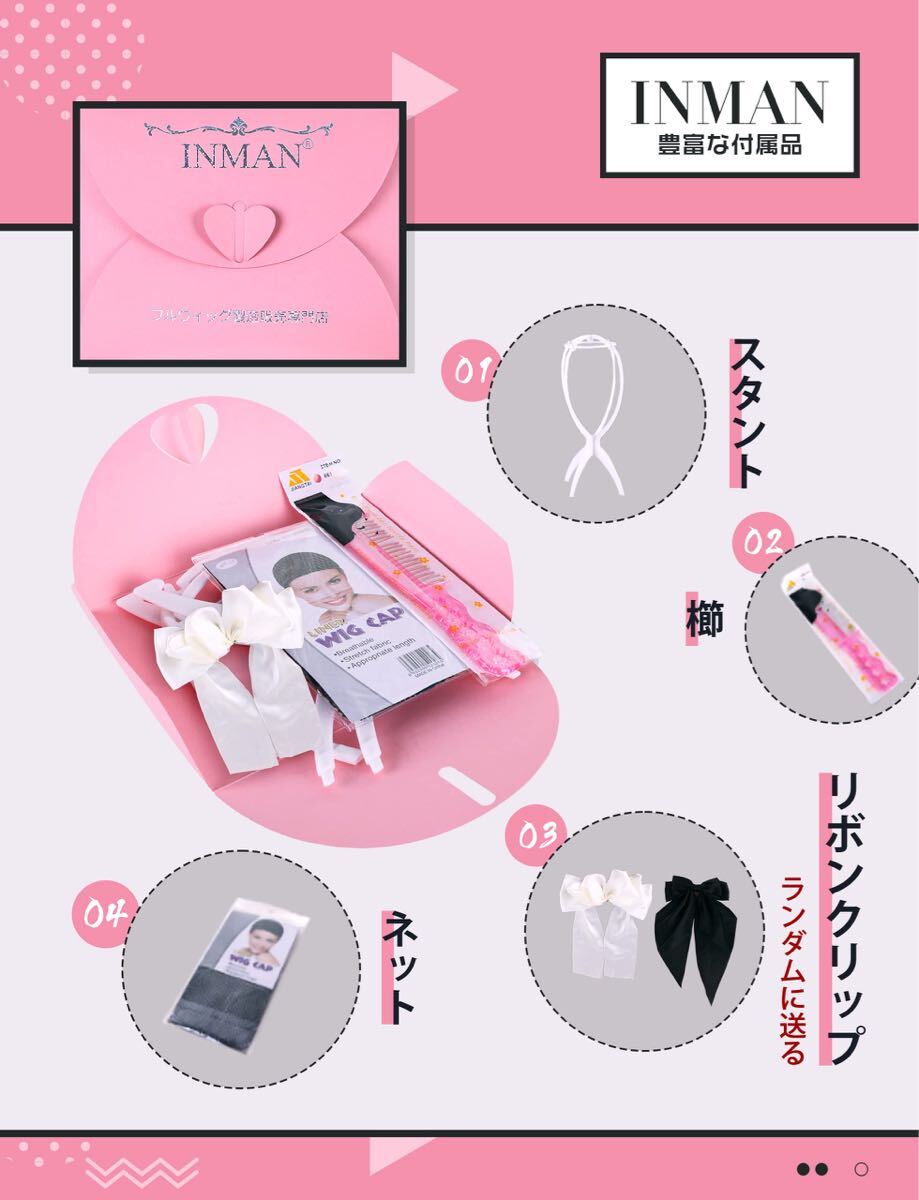 【セット品】:ウィッグ本体 + スタント + 櫛 + ネット + リボンクリップの 5点セットです。ウィッグ初心者でも簡単に着用できかつらです。