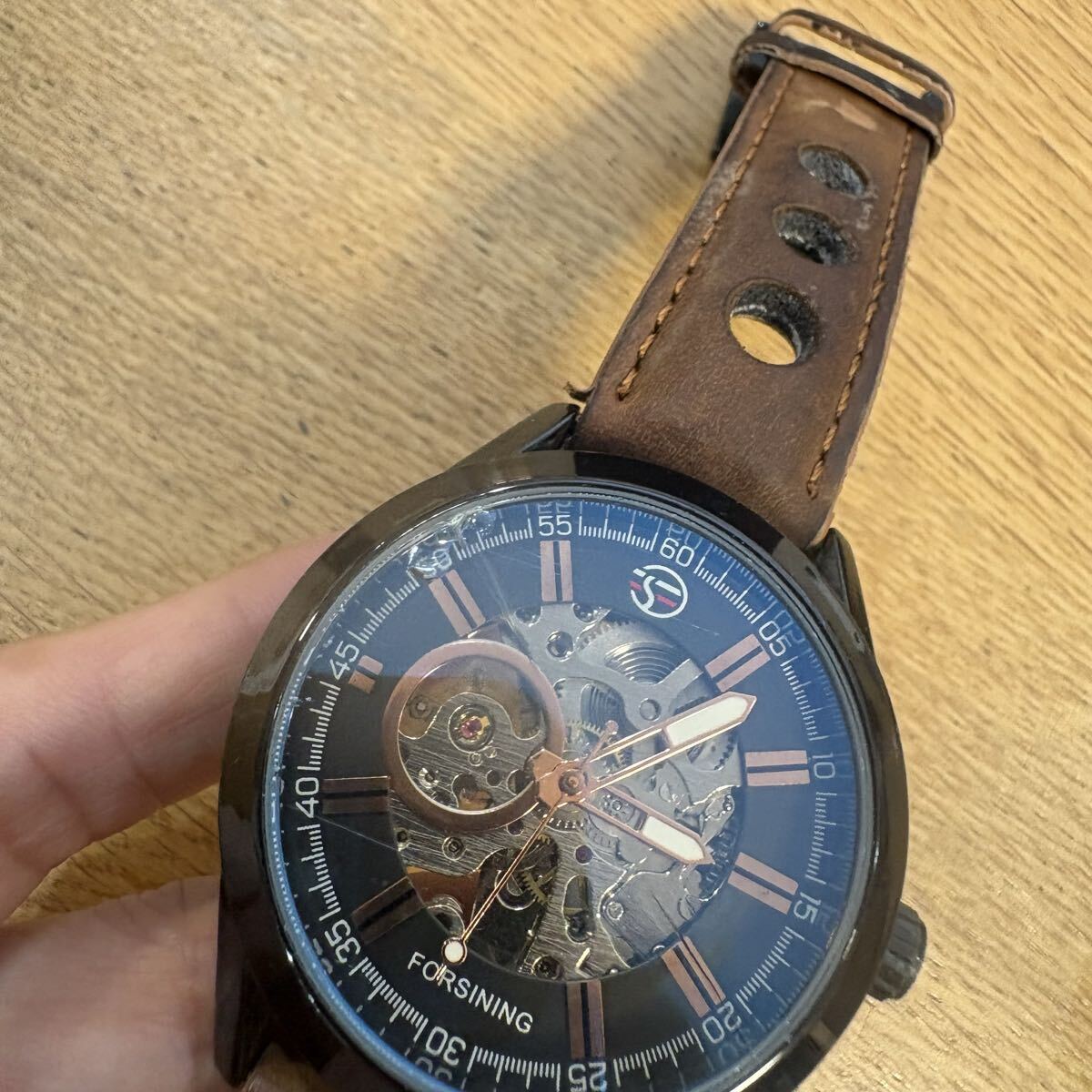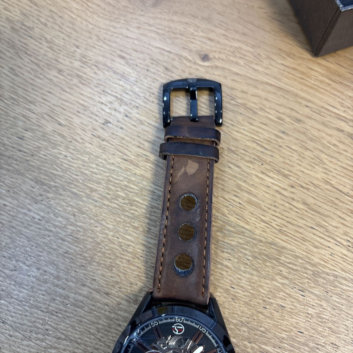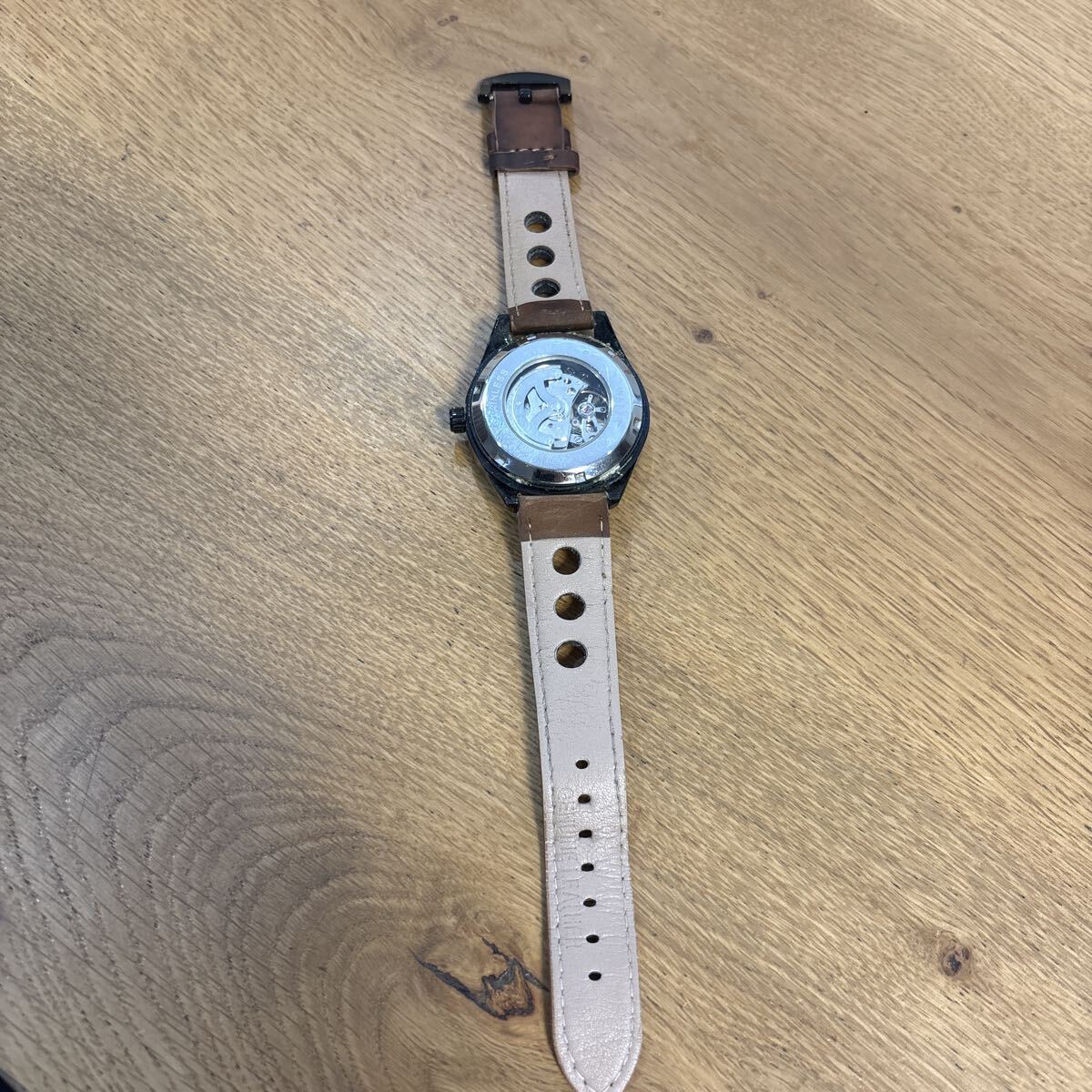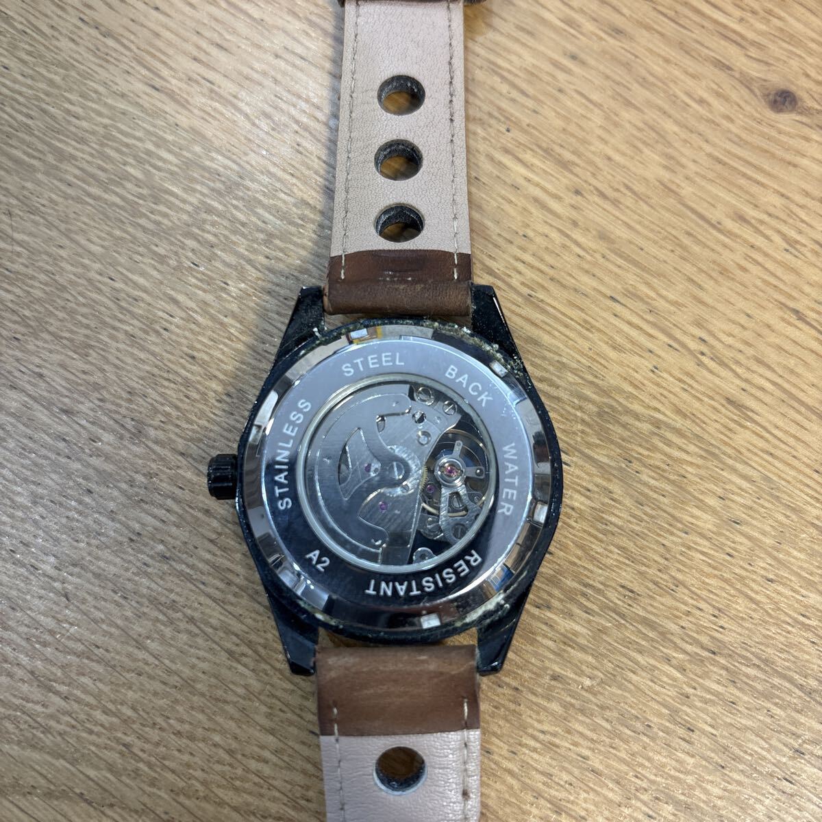 中古 腕時計 メンズ 自動巻き スケルトン 革バンド