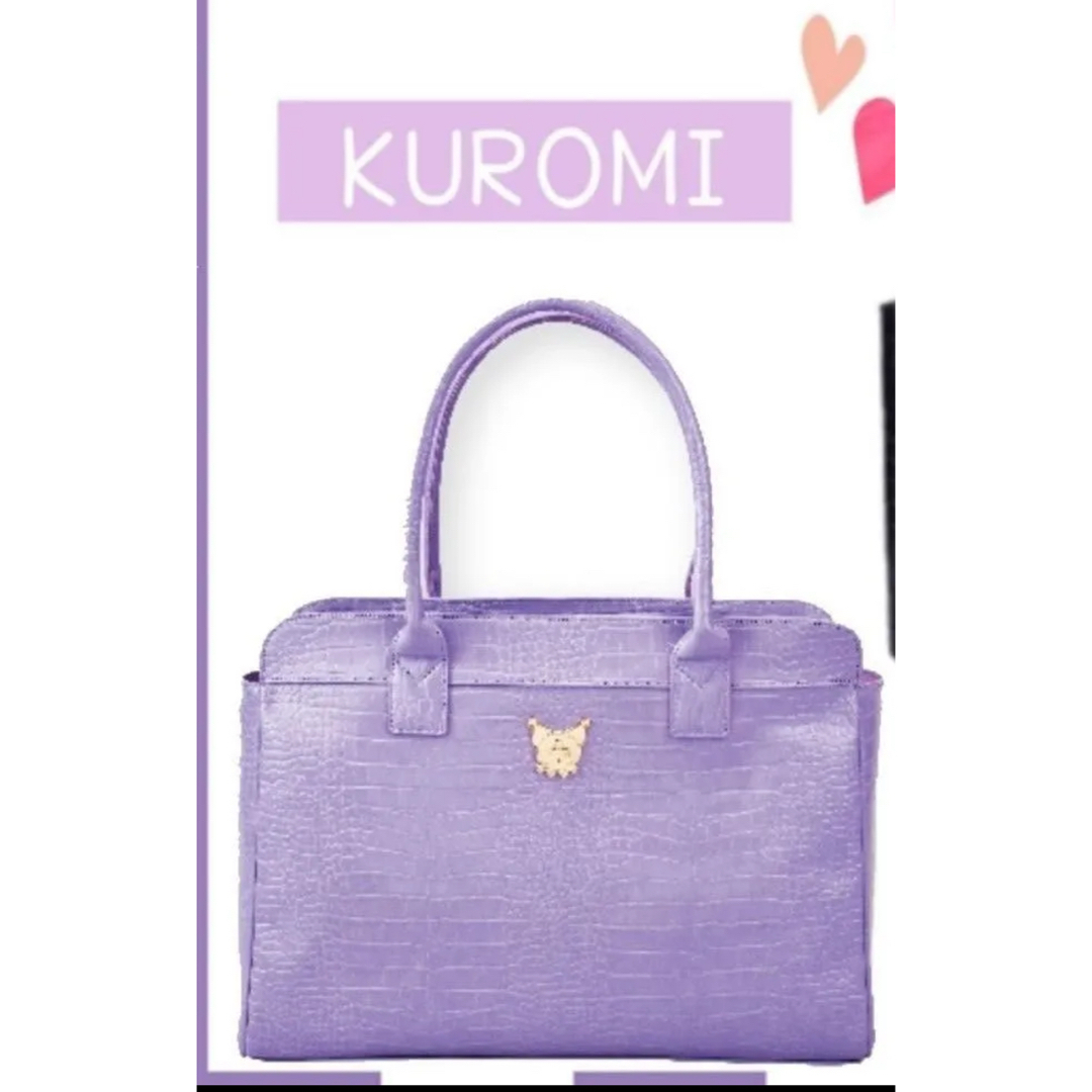 綺麗なラベンダーカラーのクロコ型押しデザインで、高級感のある光沢、中央にはクロミちゃんの金色のエンブレム付き。