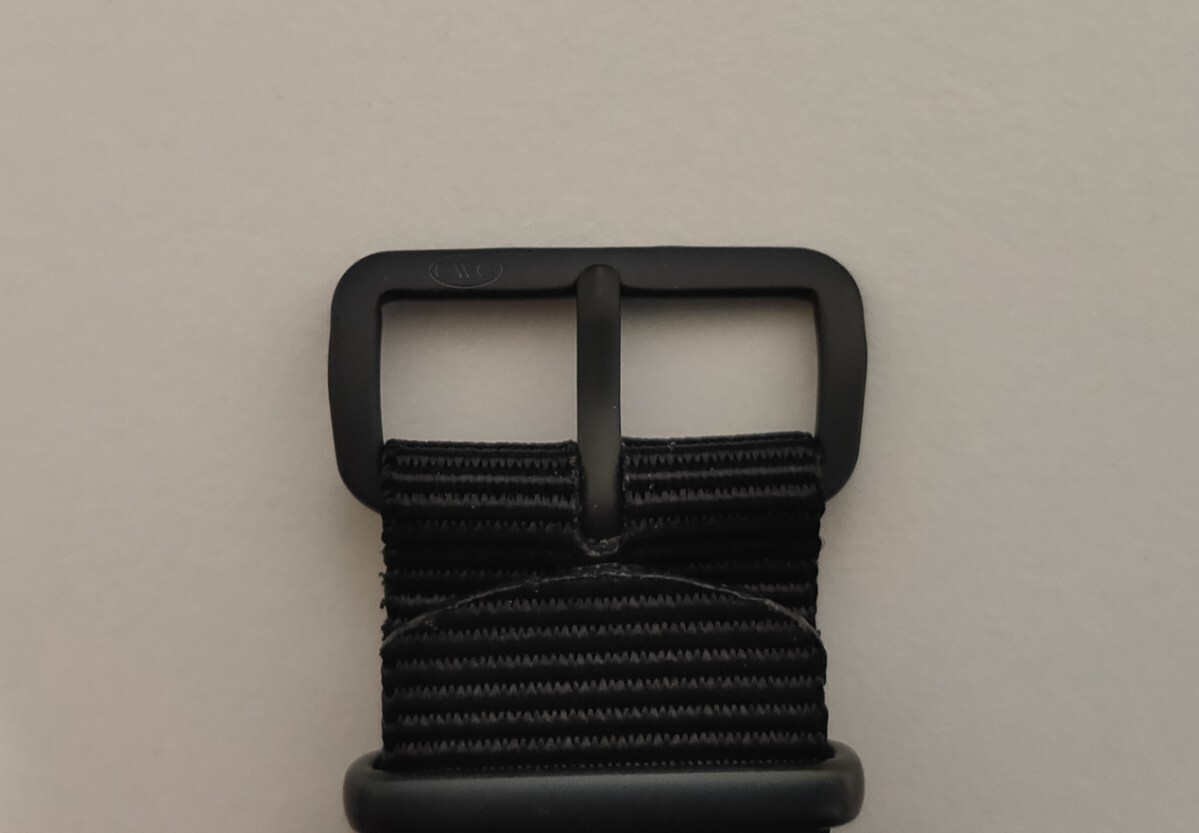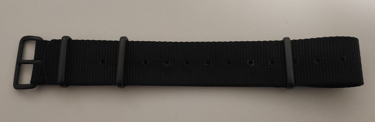 ブラック生地xつや消しPVDバックルのステルス仕様で、ラグ幅「18mm」の時計に対応します。