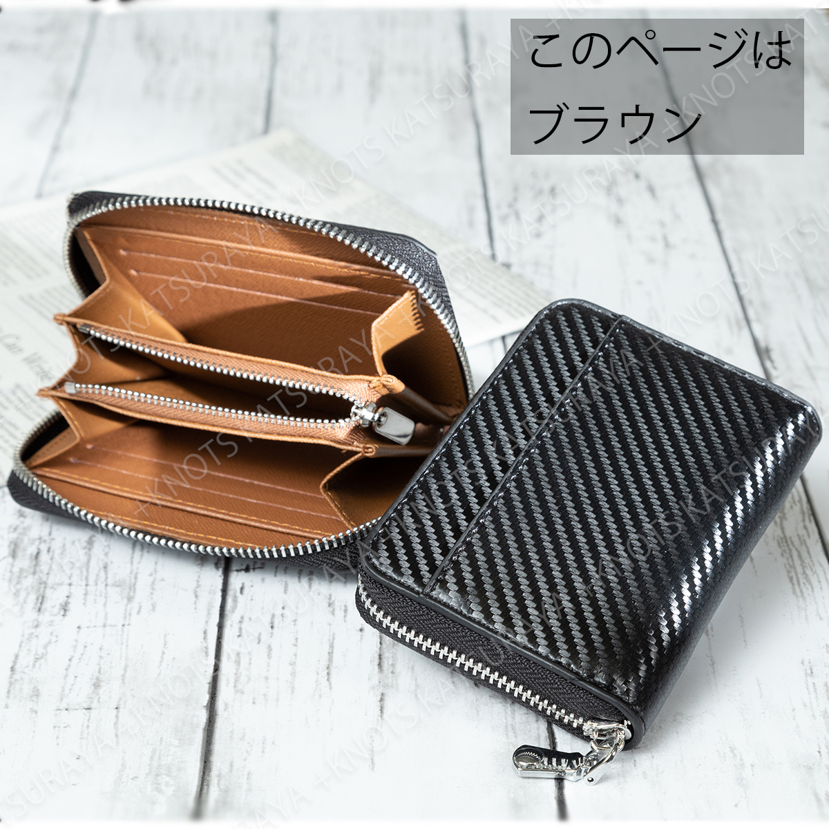 メカーボンレザー ミニ財布★ブラウン★小銭入れ メンズ レデース 小さい 小型 コンパクト ラウンドファスナー ジップ 財布 本革レザーa250