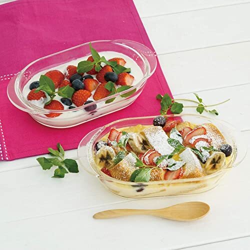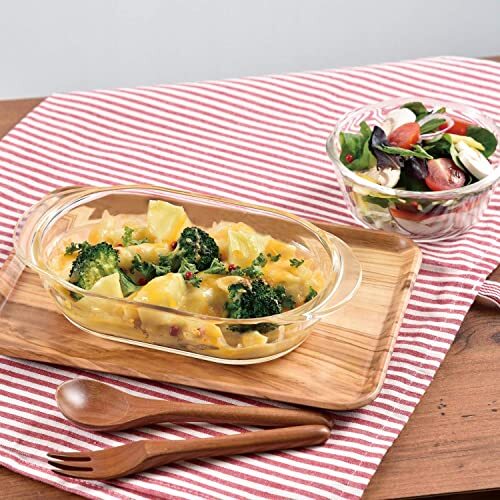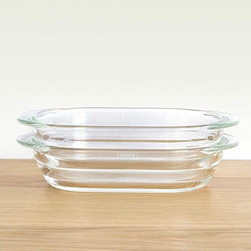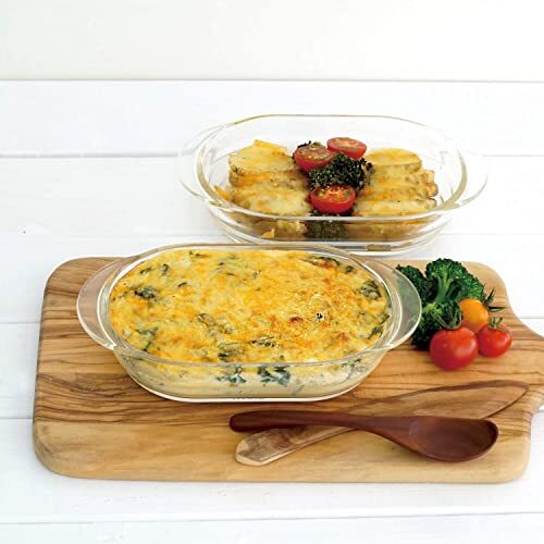 オーブン調理・食器としても使える耐熱ガラス製グラタン皿。耐熱ガラス製なのでオーブン調理・レンジ調理可能、食器としても使えるデザインです。