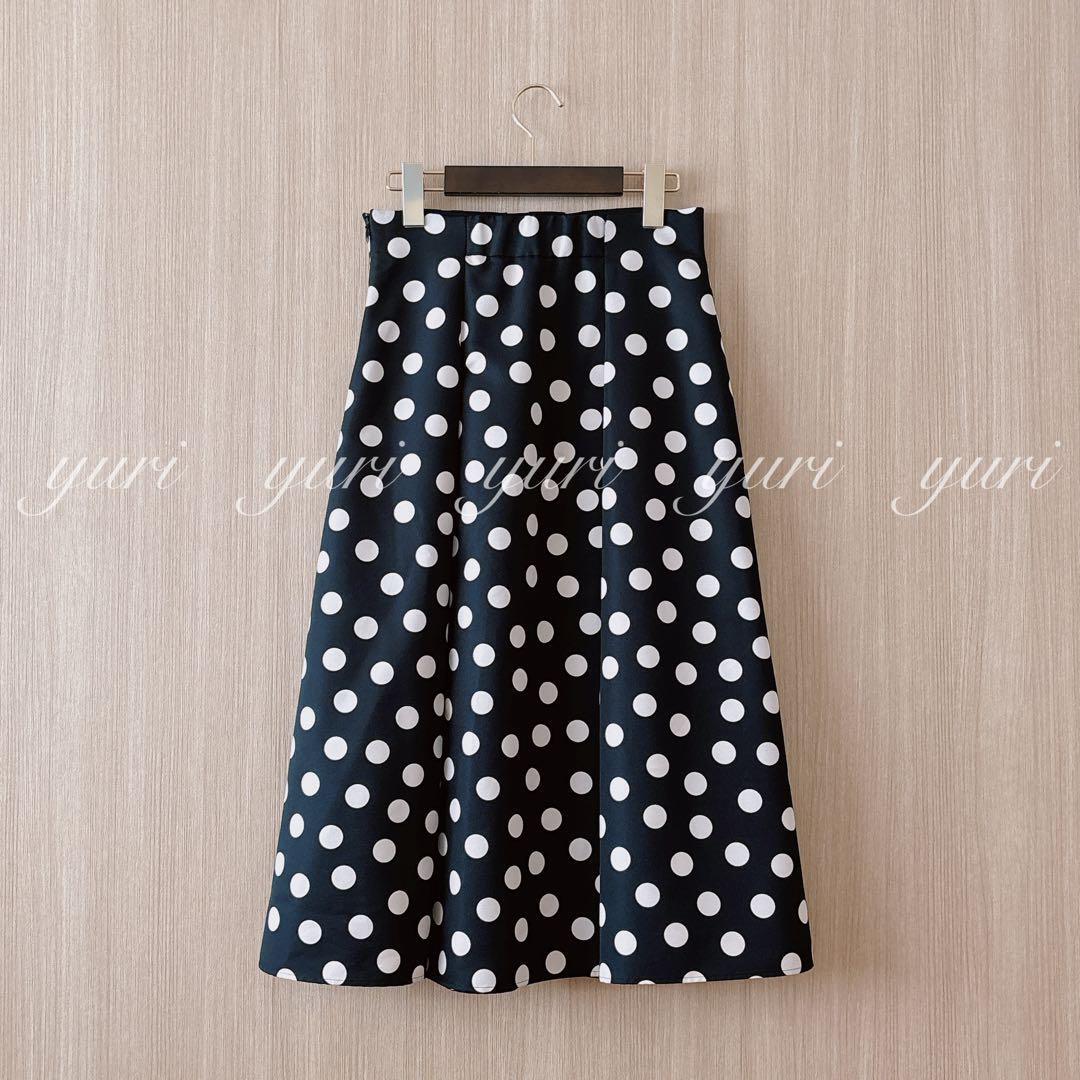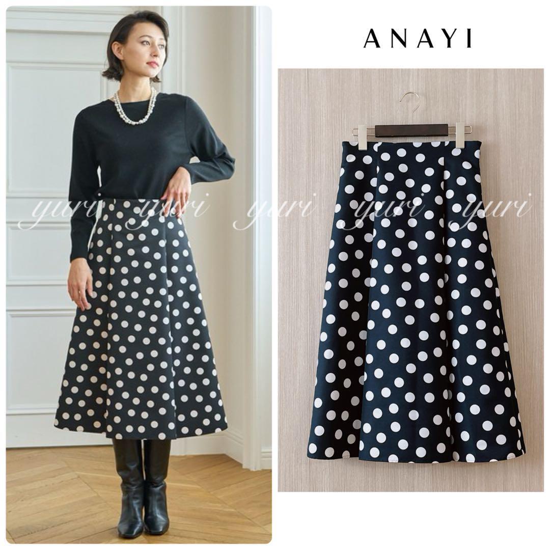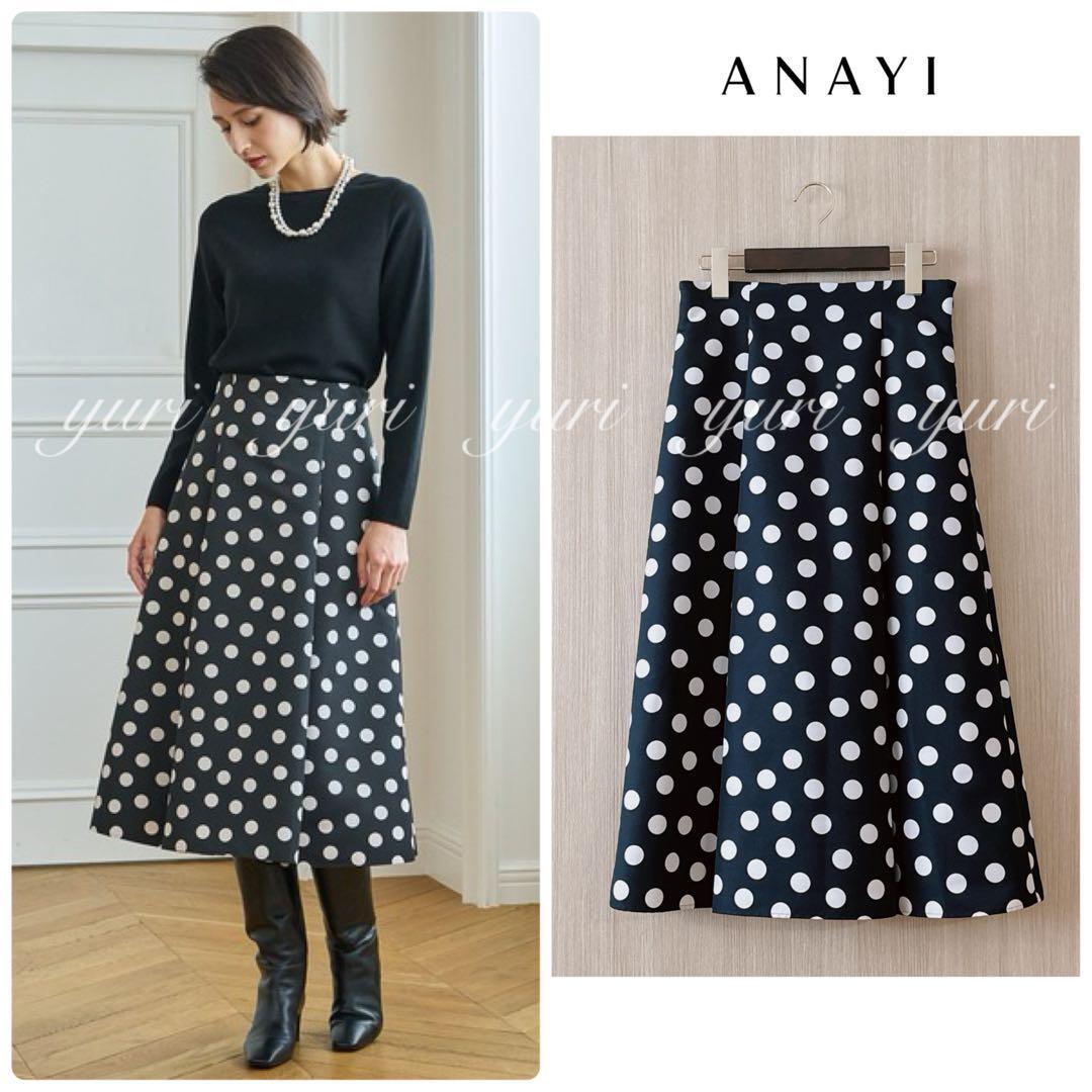 【288】アナイ グログランドットハイウエスト スカート 黒白 36