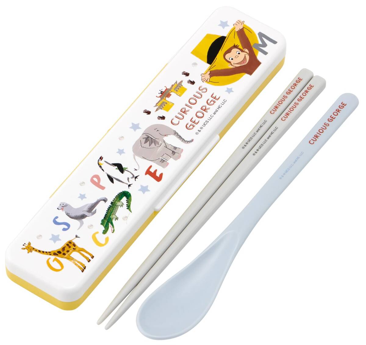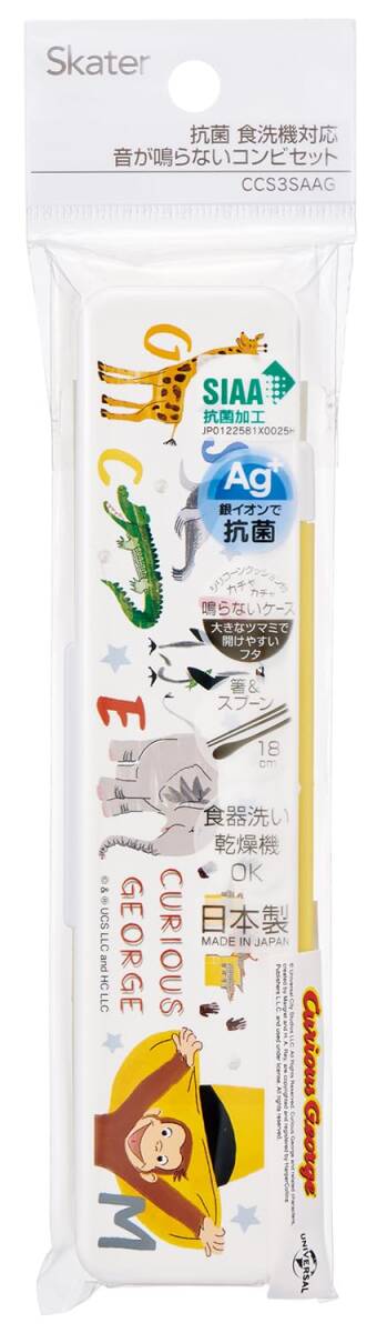 スケーター(Skater) 箸 スプーン コンビセット 18cm 抗菌加工 お弁当 大人用 シリコンクッション付きで音がならない 日本製 おさる