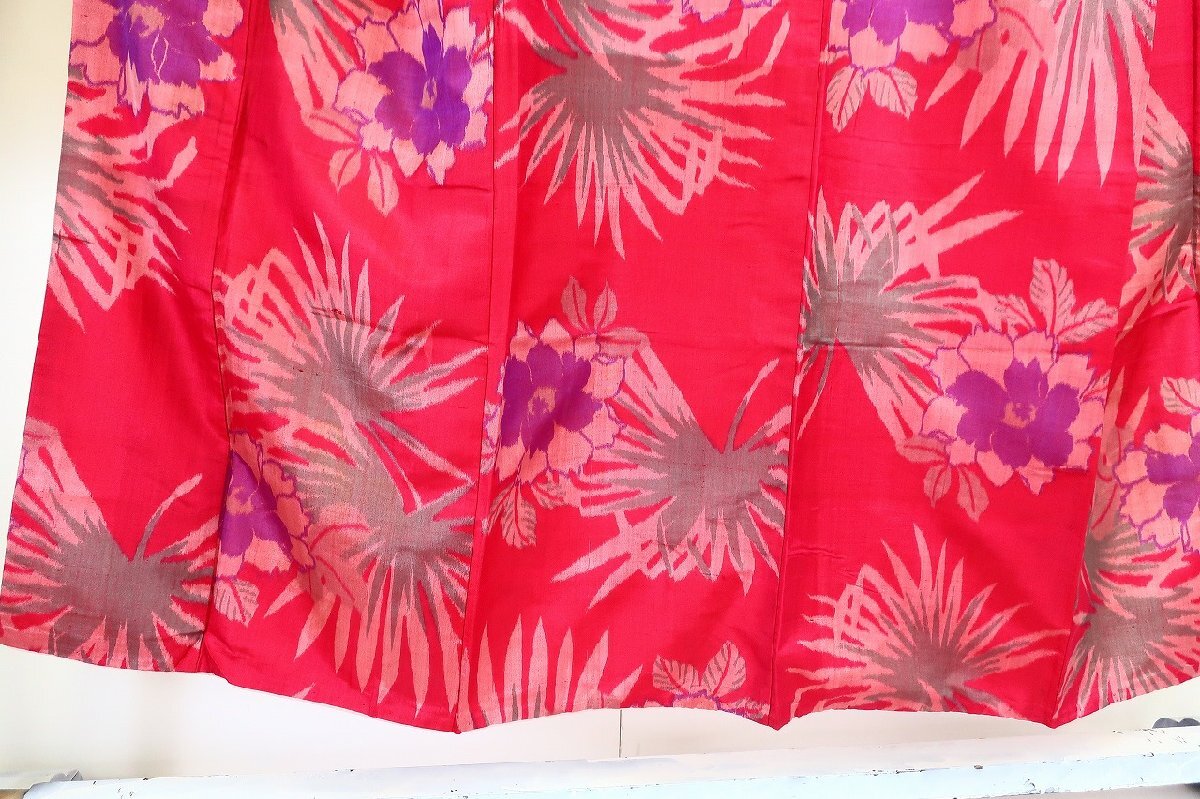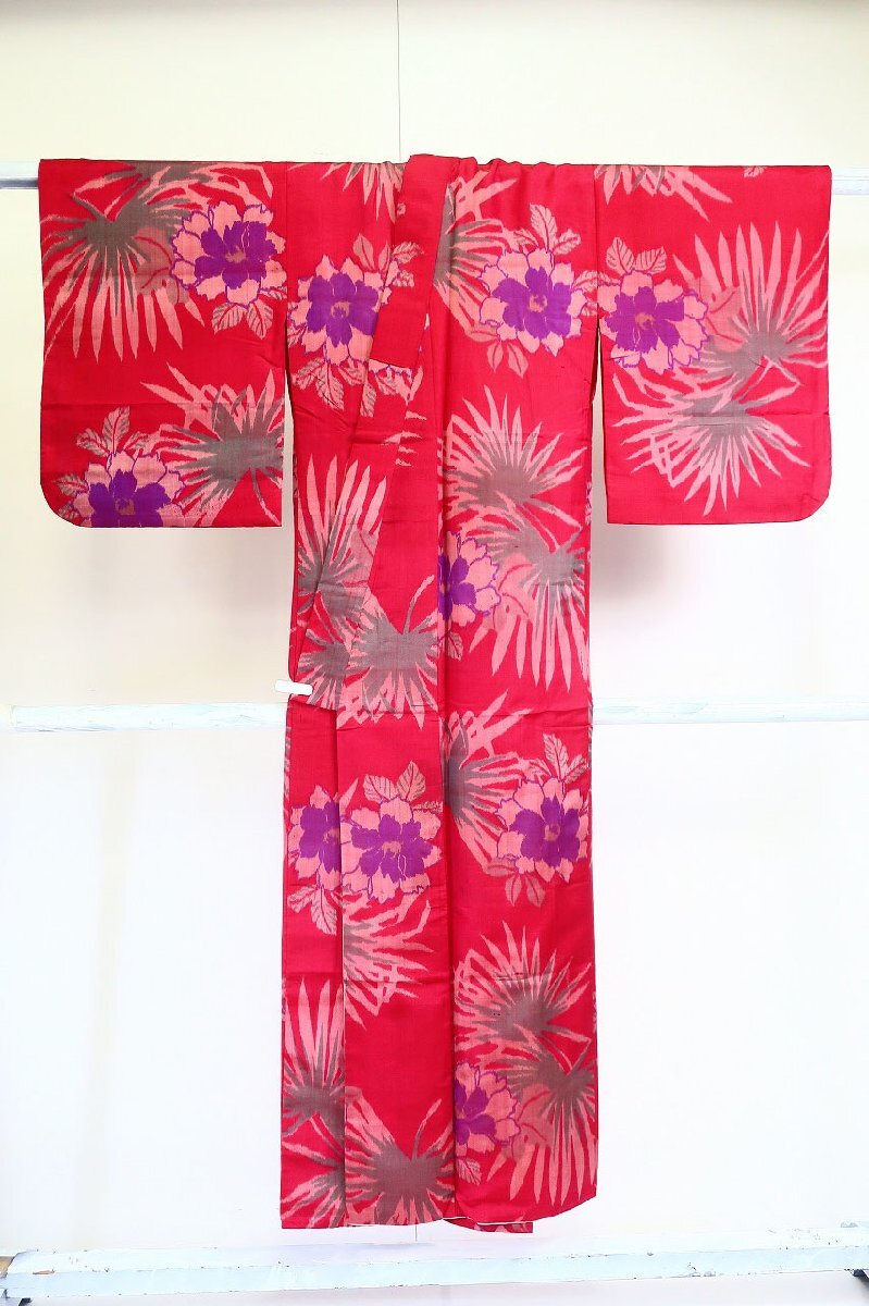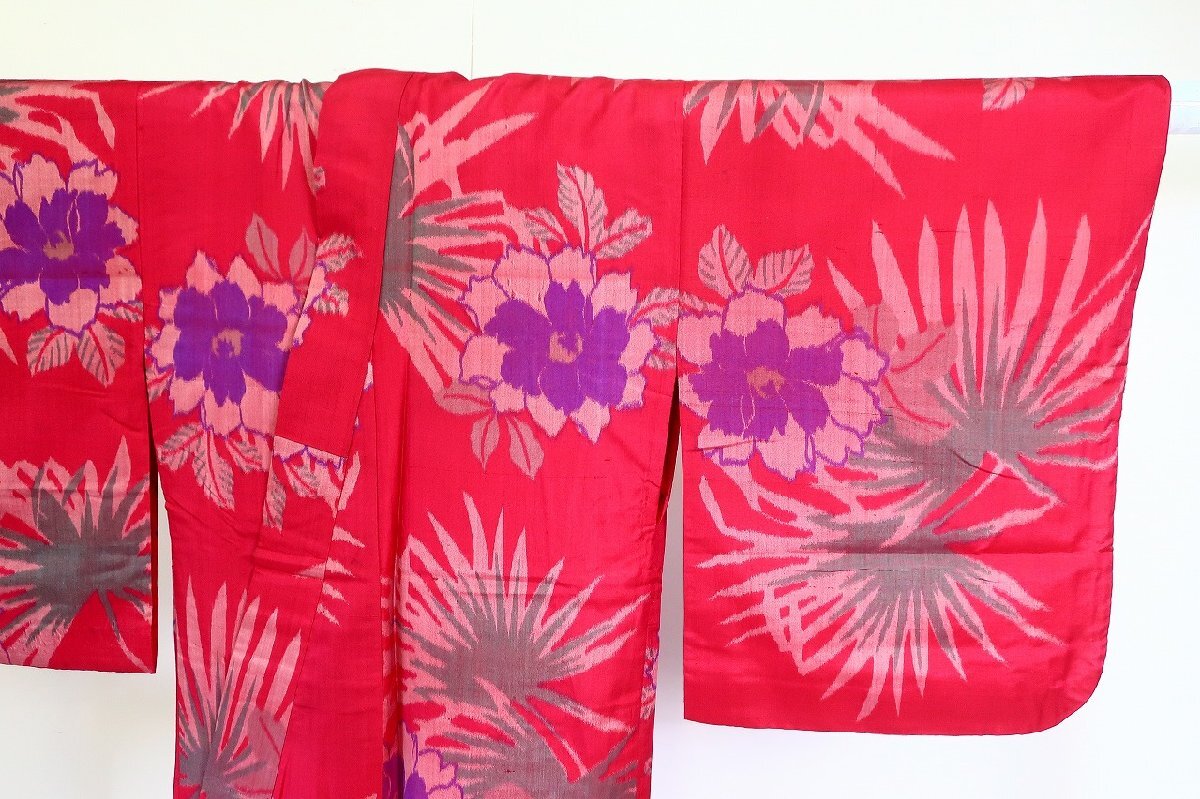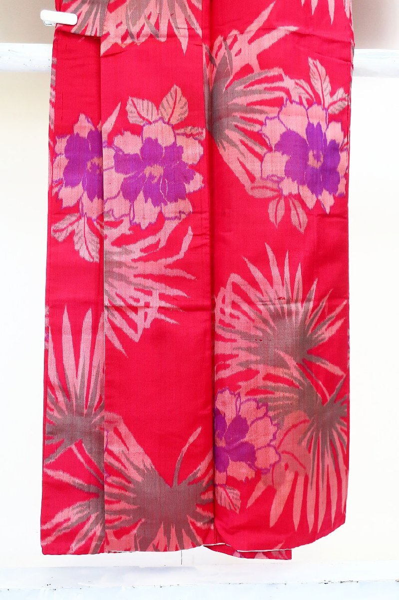 アンティーク 小紋 銘仙 身丈141.0cm 赤ピンク 花文 大正ロマン レトロ 正絹 仕立て上がり kimono 着物フィ 19795 |