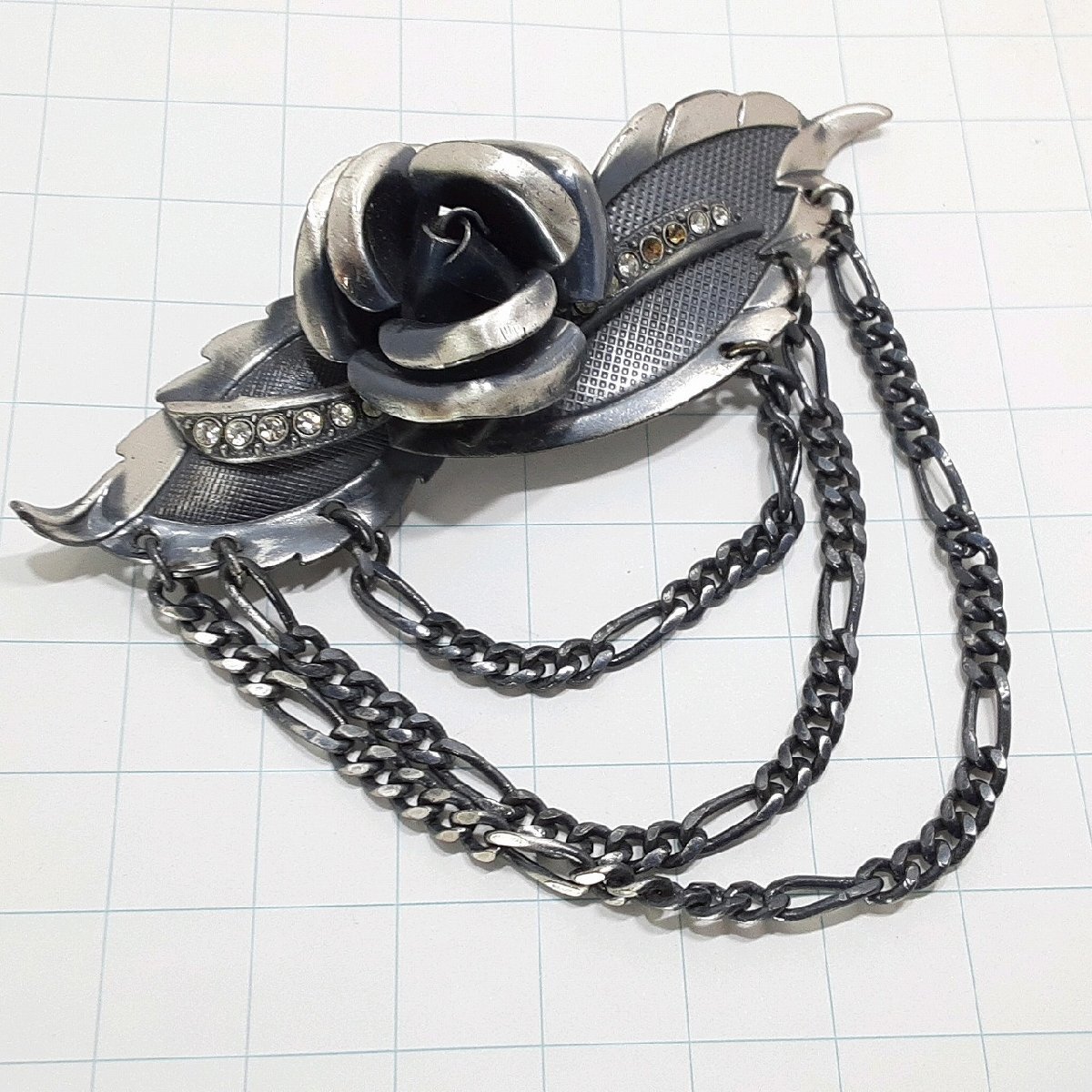 送料無料)ビンテージ☆薔薇 チェーン☆アンティーク ブローチ A32020