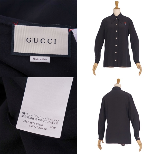 | 美品 グッチ GUCCI シャツ ブラウス ロングスリーブ 長袖 シルク トップス レディース イタリア製 36(S相当) ブラック |