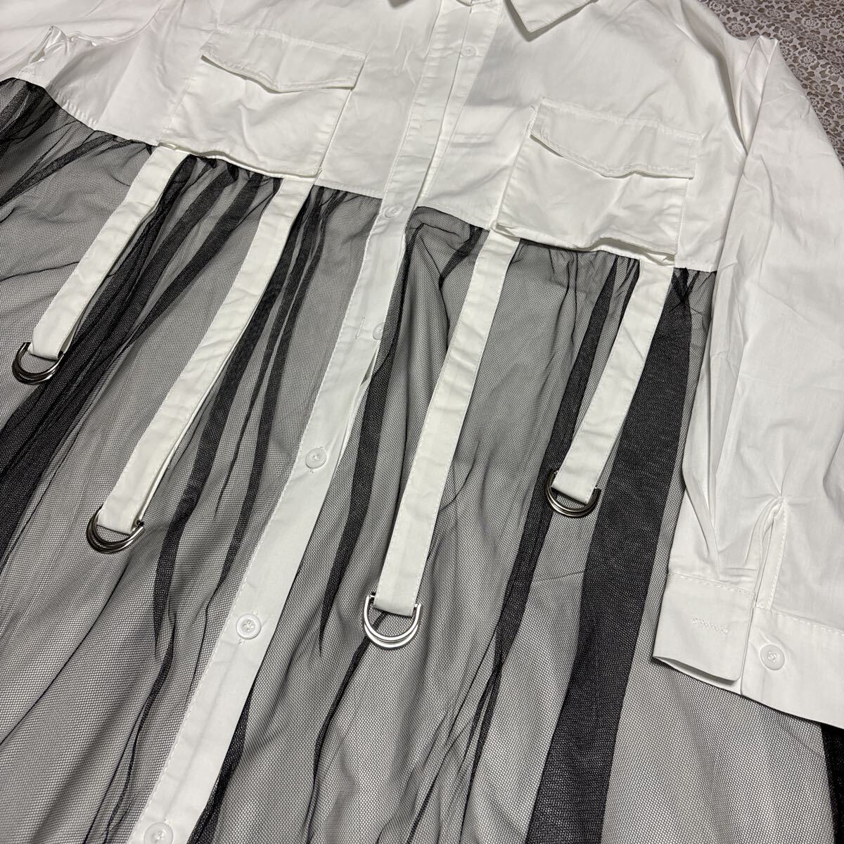 ロング前開きリング付きレースワンピース