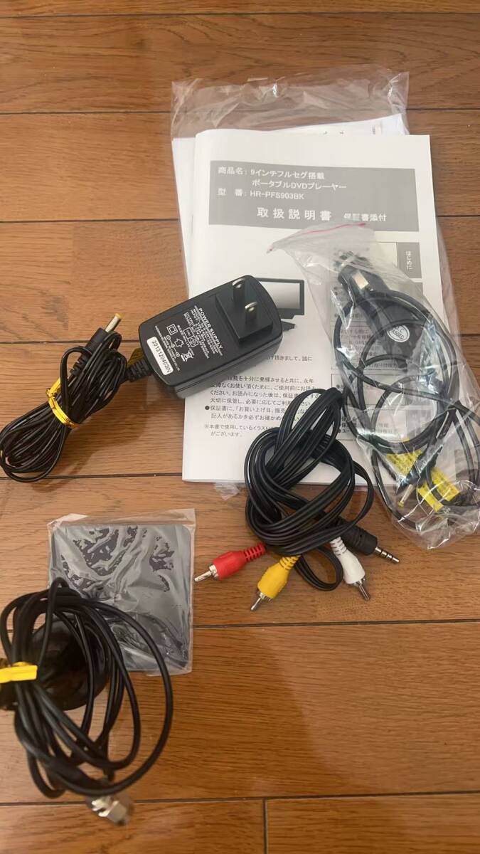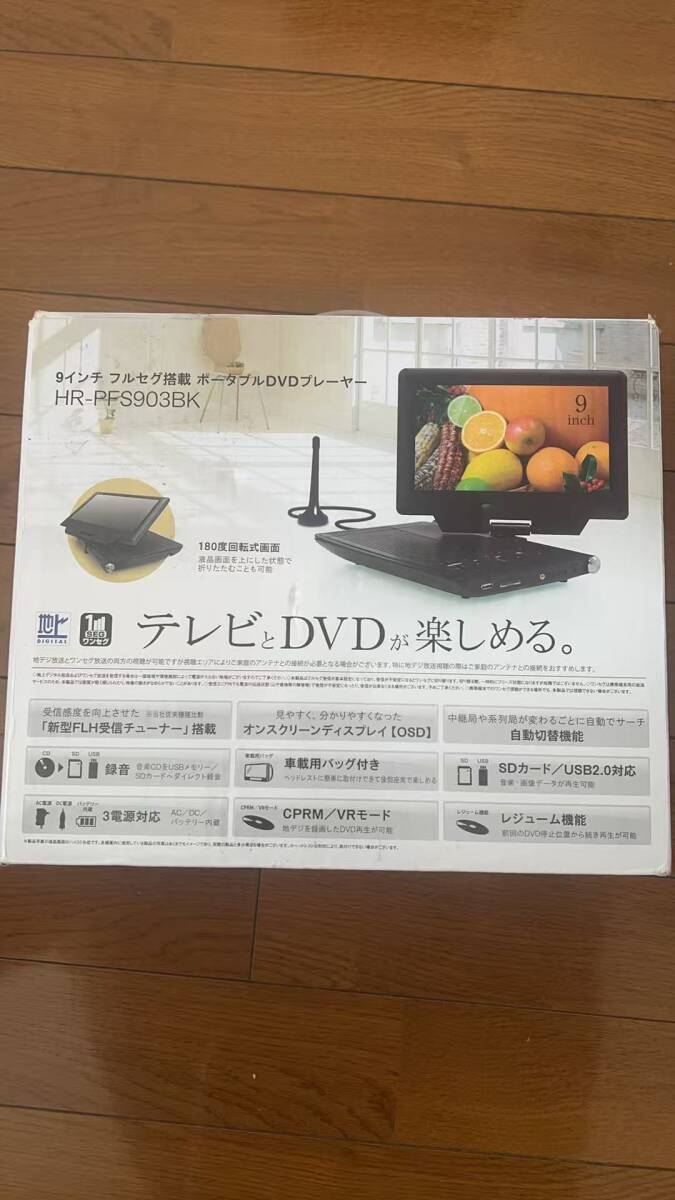 テレビとDVDが楽しめるポータブルプレーヤー。 - モデル: HR-PFS903BK - 機能: テレビ・DVDプレーヤー - 付属品: リモコン、ケーブル、取扱説明書 - カラー: ブラック ご覧いただきありがとうございます。