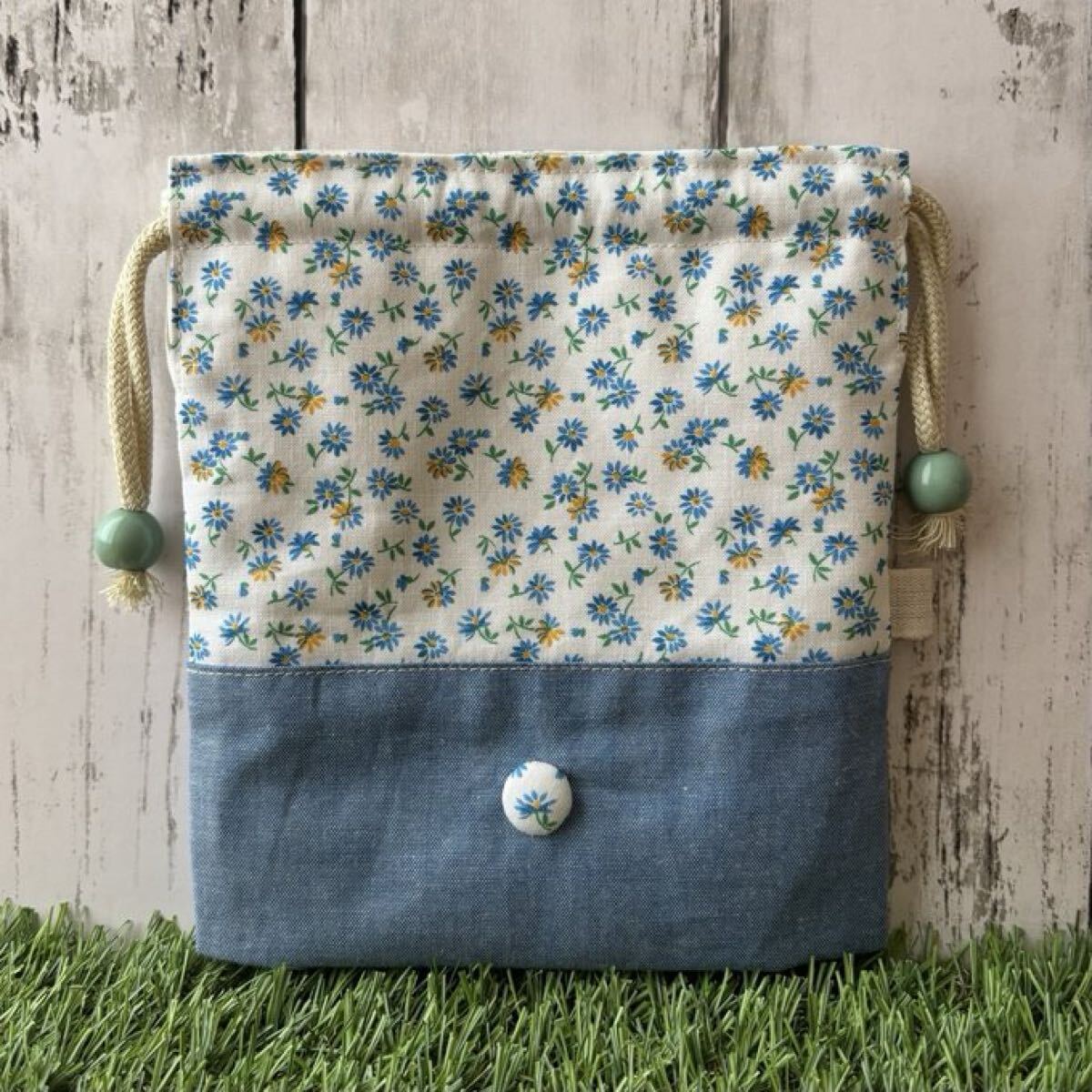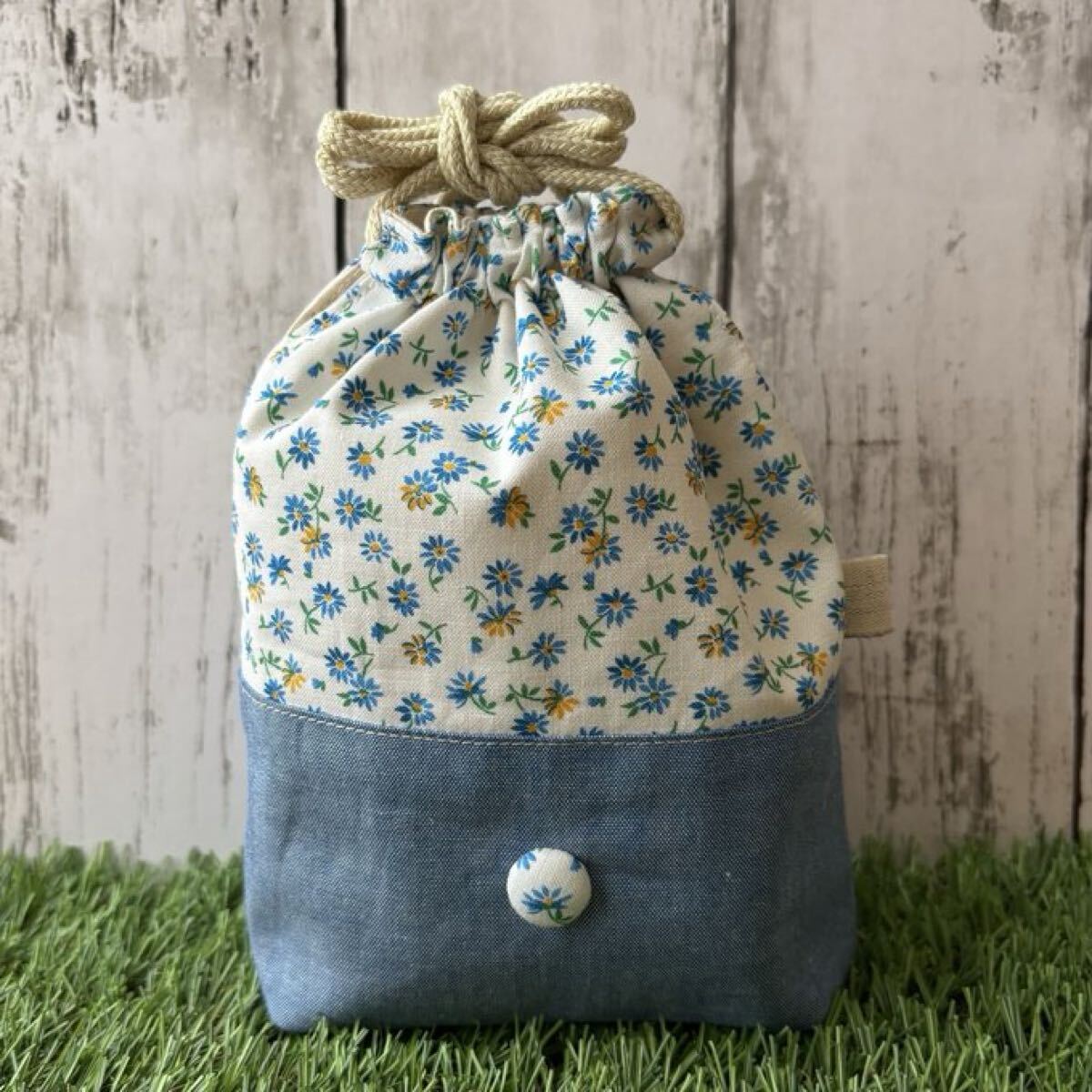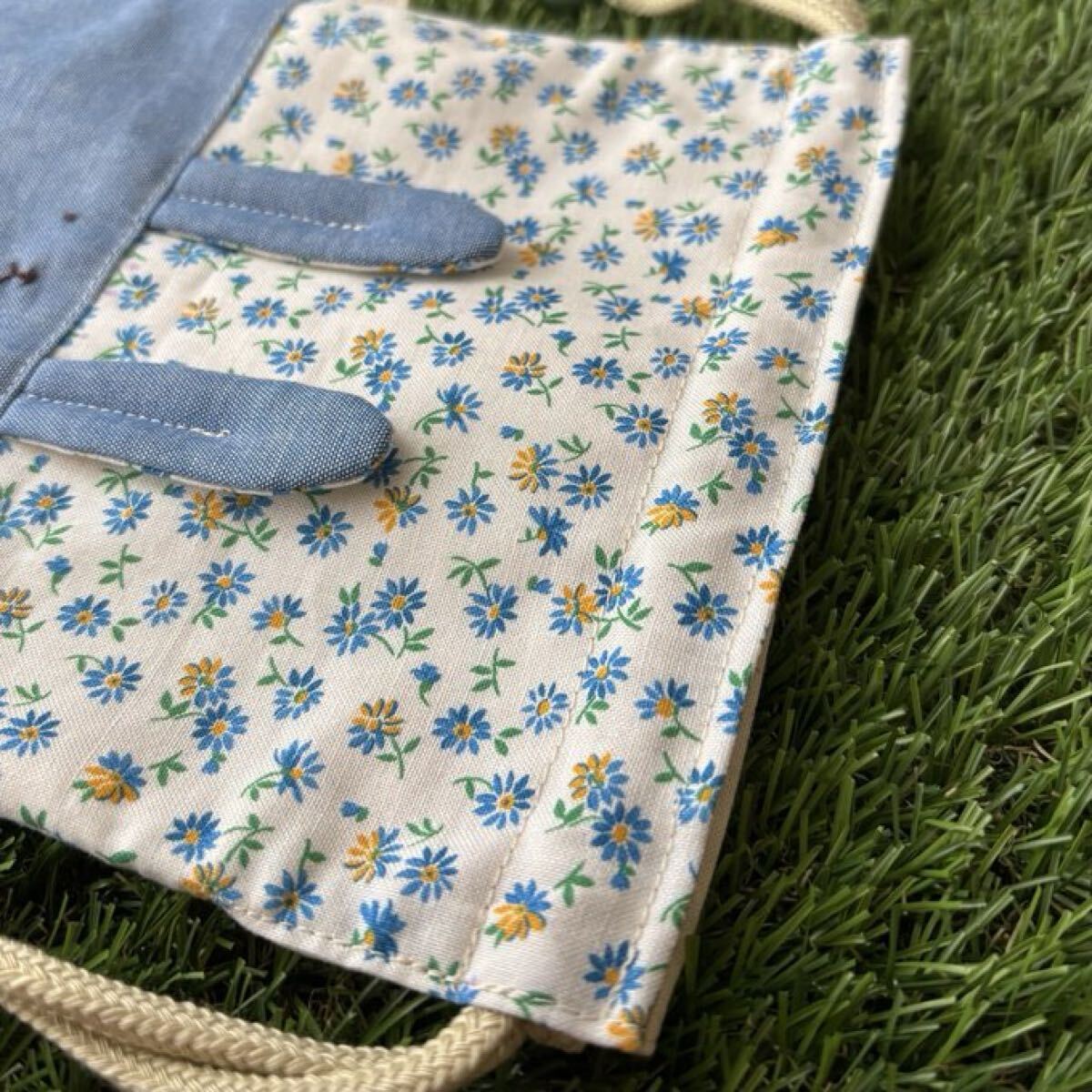 USAコットンのブルーのお花柄かわいらしいデザインの生地との組み合わせです。