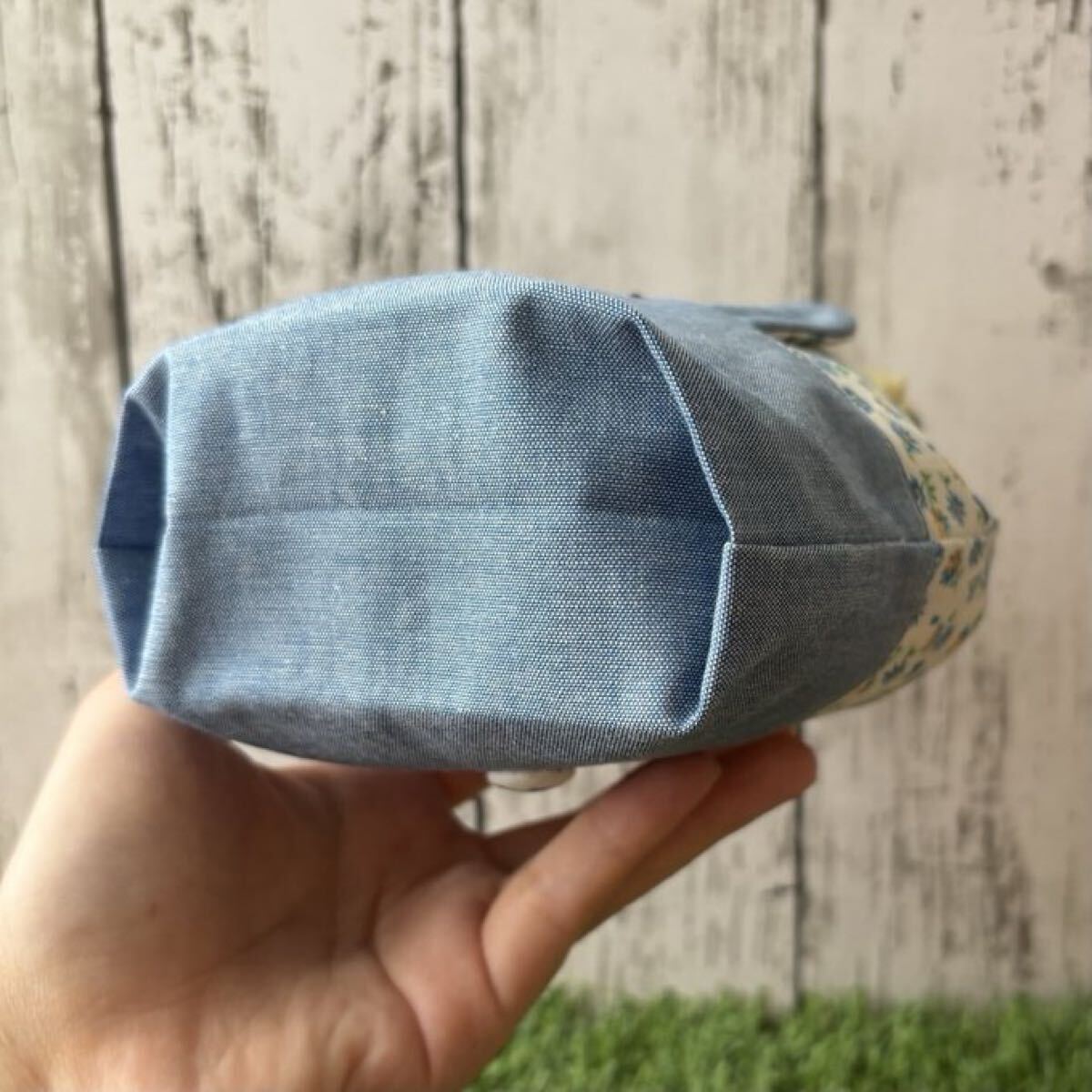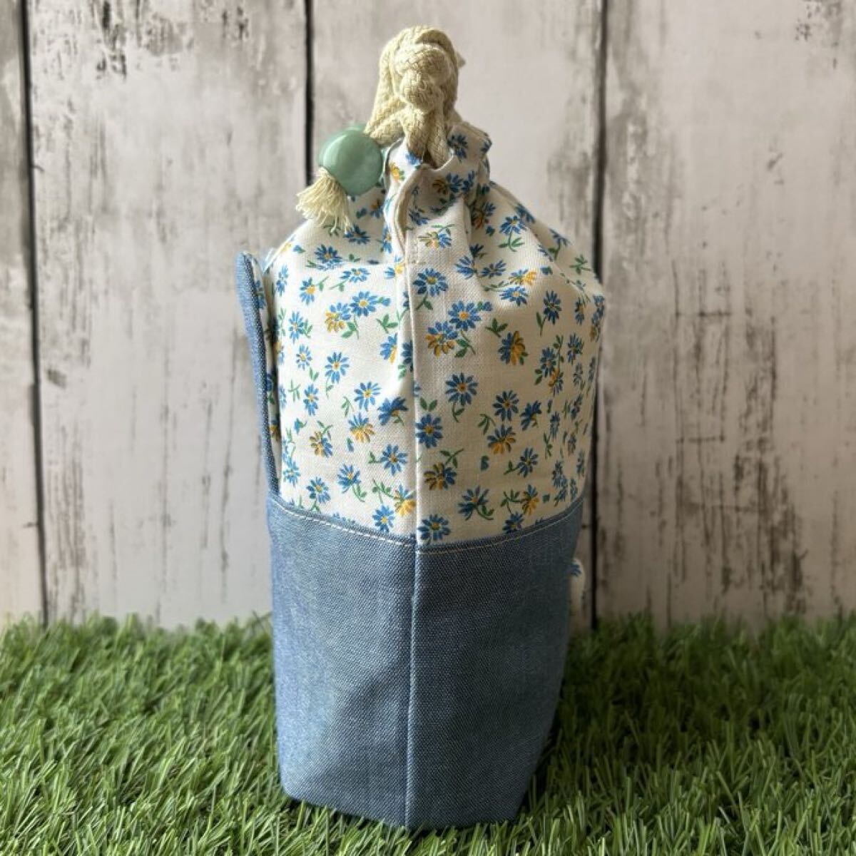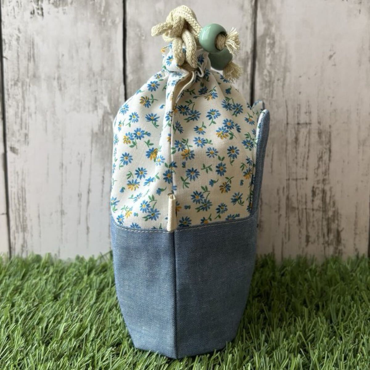 USAコットンのブルーのお花柄かわいらしいデザインの生地との組み合わせです。