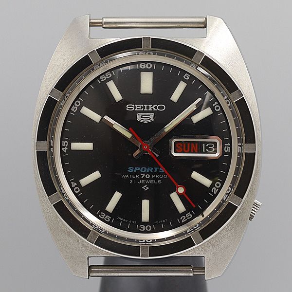 デッドストック級 稼働 美品 セイコー5スポーツ 6119-8140 デイデイト 黒 AT/自動巻 ヴィンテージ メンズ腕時計 NSY13335ABC 0018700 8BJT