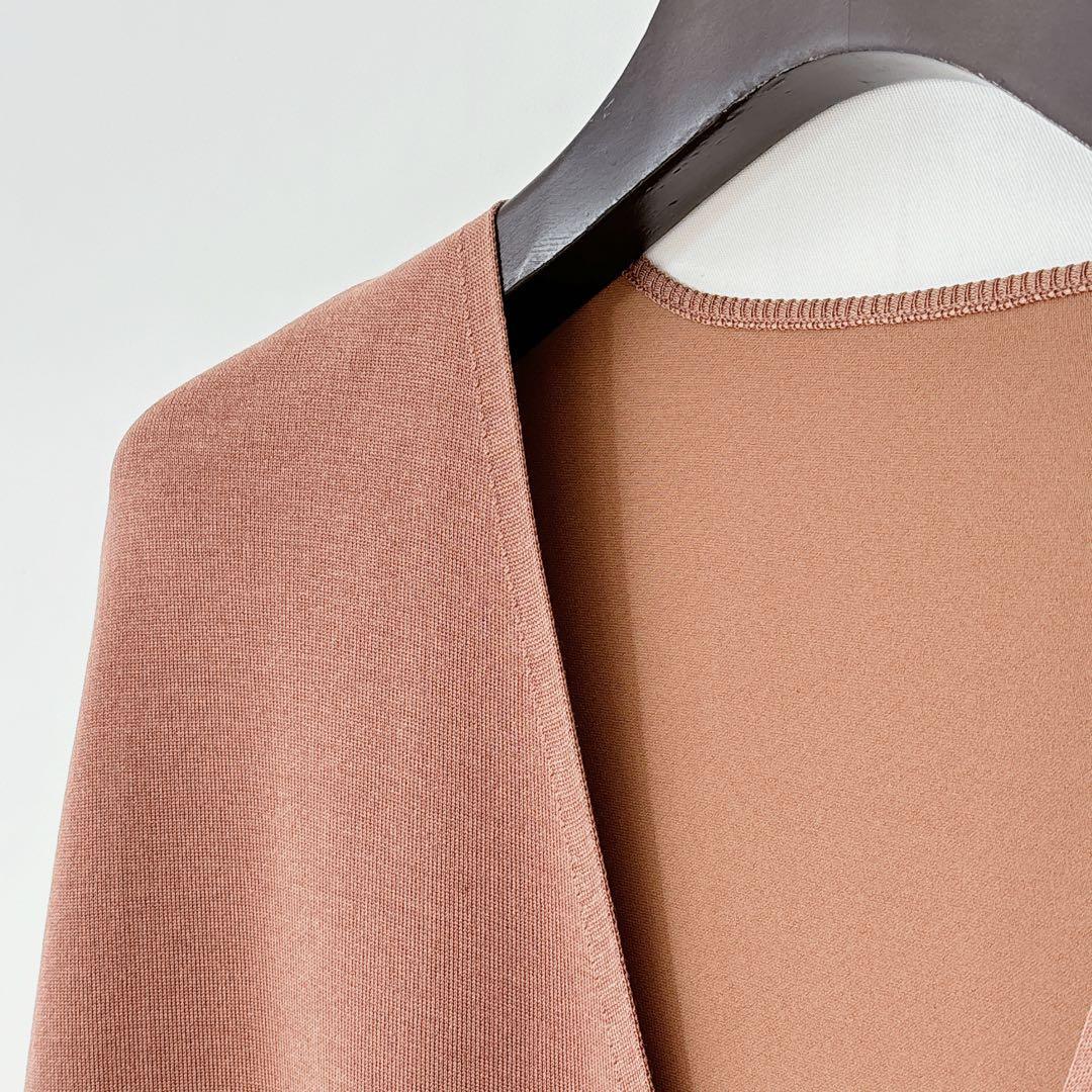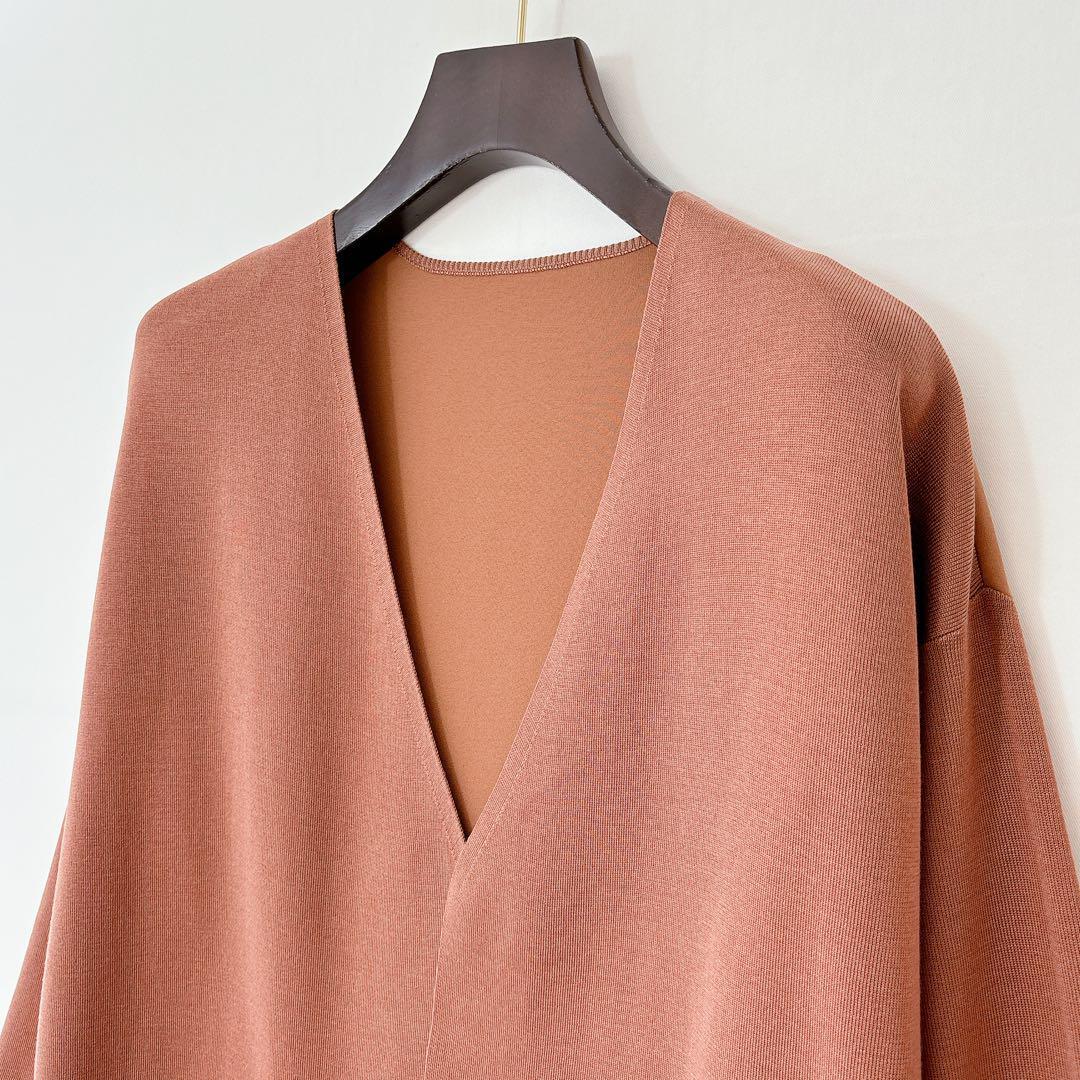 シルクポリエステルのニットとさらりとしたポリエステルのコンビのデザインです。