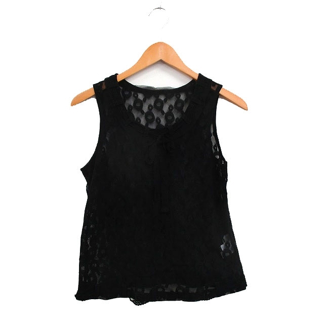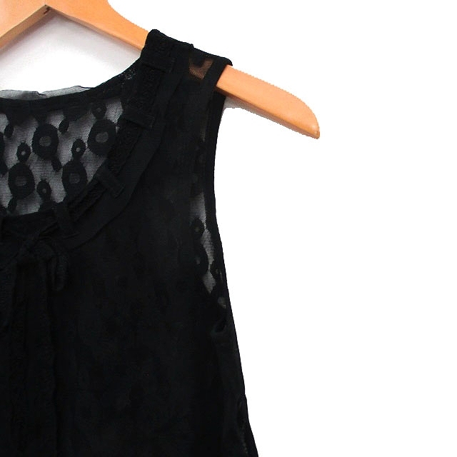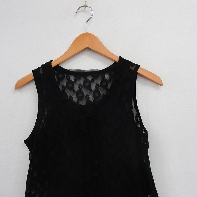 t.b ティービー センソユニコ シアー タンクトップ リボン レース 38 ブラック 黒 /KT30 レディース