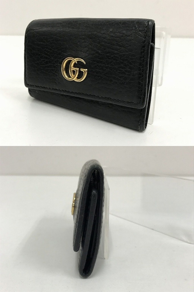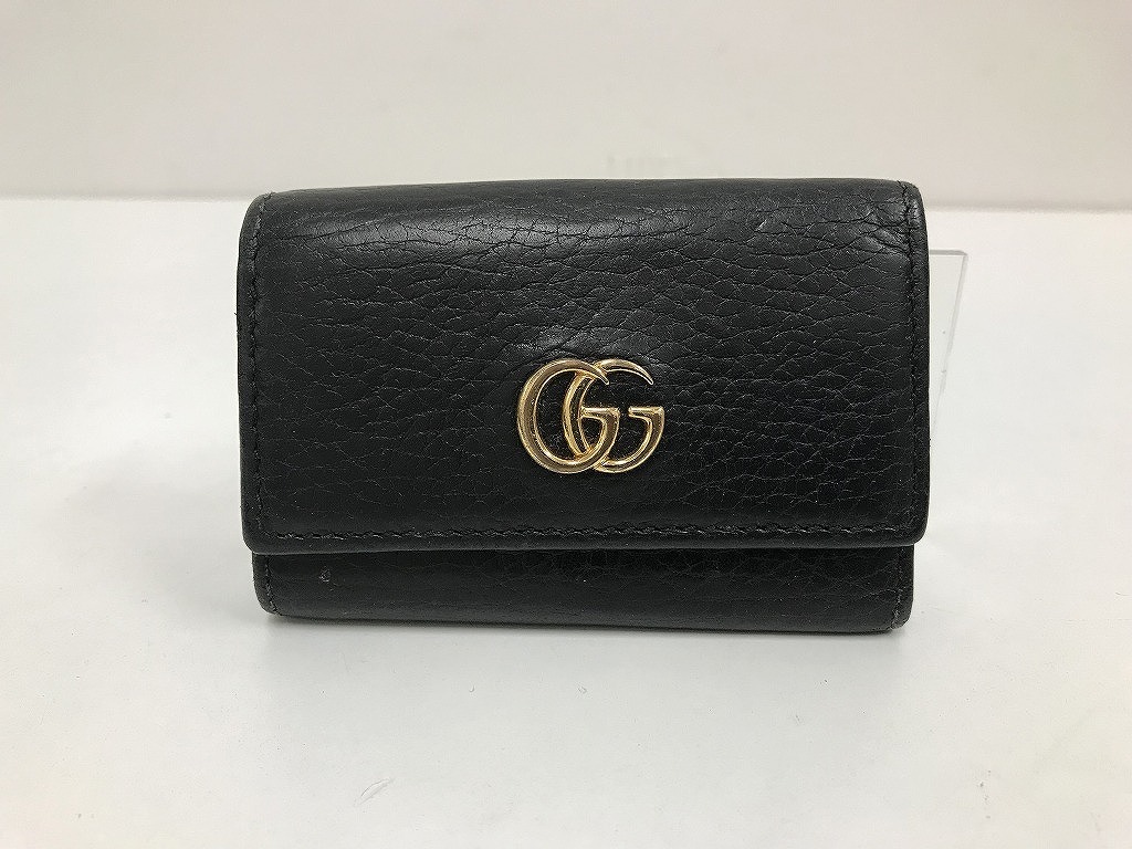 商品説明GUCCI 圧倒的存在感で魅せる!上品でエレガントなお洒落の魅力 GGマーモント ダブルG 三つ折りキーケース黒 でございます。  上品なブラックカーフレザーを全体に使用した贅沢なデザイン。 フロントにはゴールドのプチGGアイコンが施され、上品で高級な佇まいに魅了されます。  男女兼用でお使いいただけます。