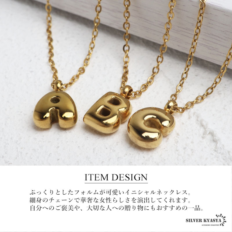 ぷっくりとしたフォルムが可愛いイニシャルネックレス。細身のチェーンで華奢な女性らしさを演出してくれます。自分へのご褒美や、大切な人への贈り物にもおすすめの一品。