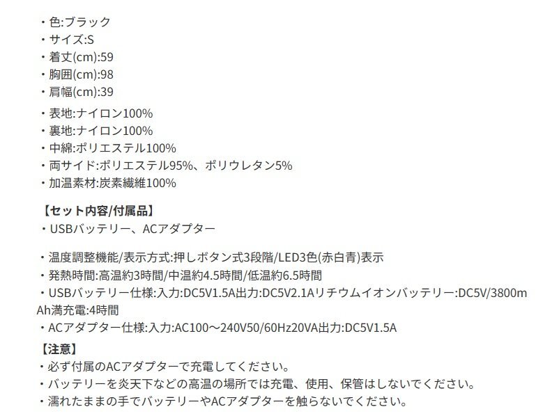 新品! 展示品! DAISHIN ウェア 防寒あったかベスト WV-S20 バッテリー付き サイズS ブラック7700円スタート!