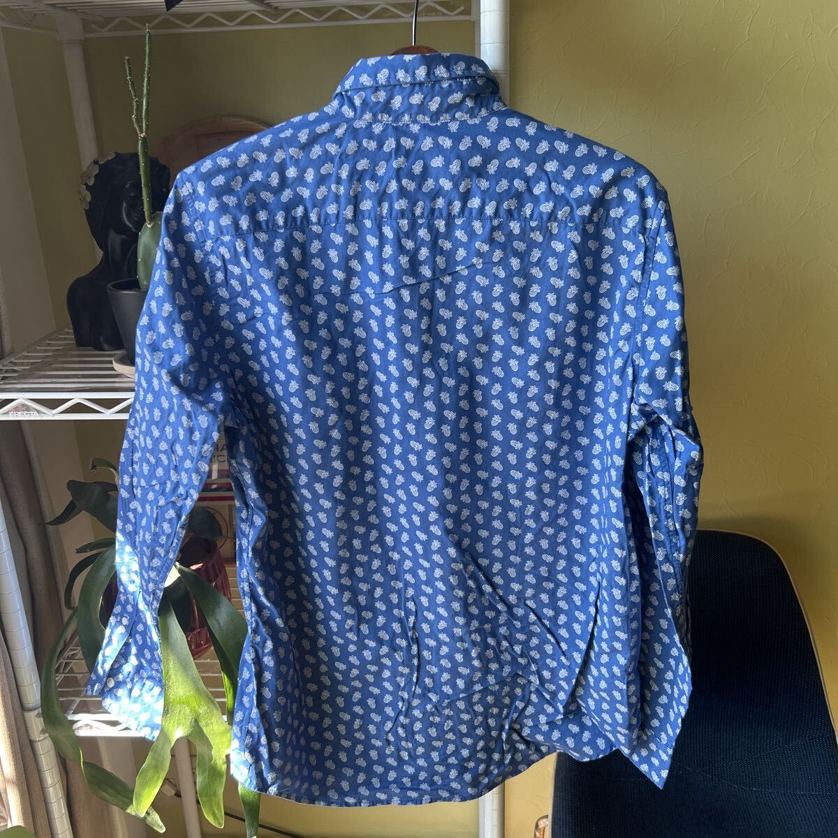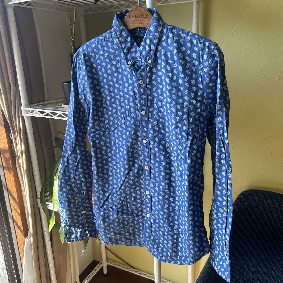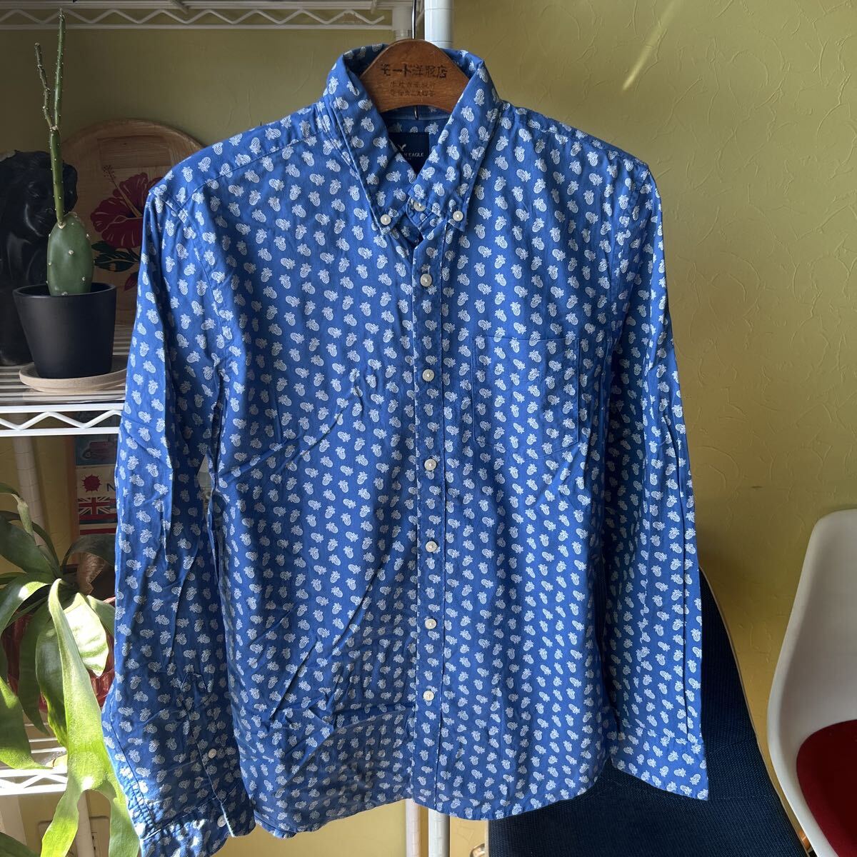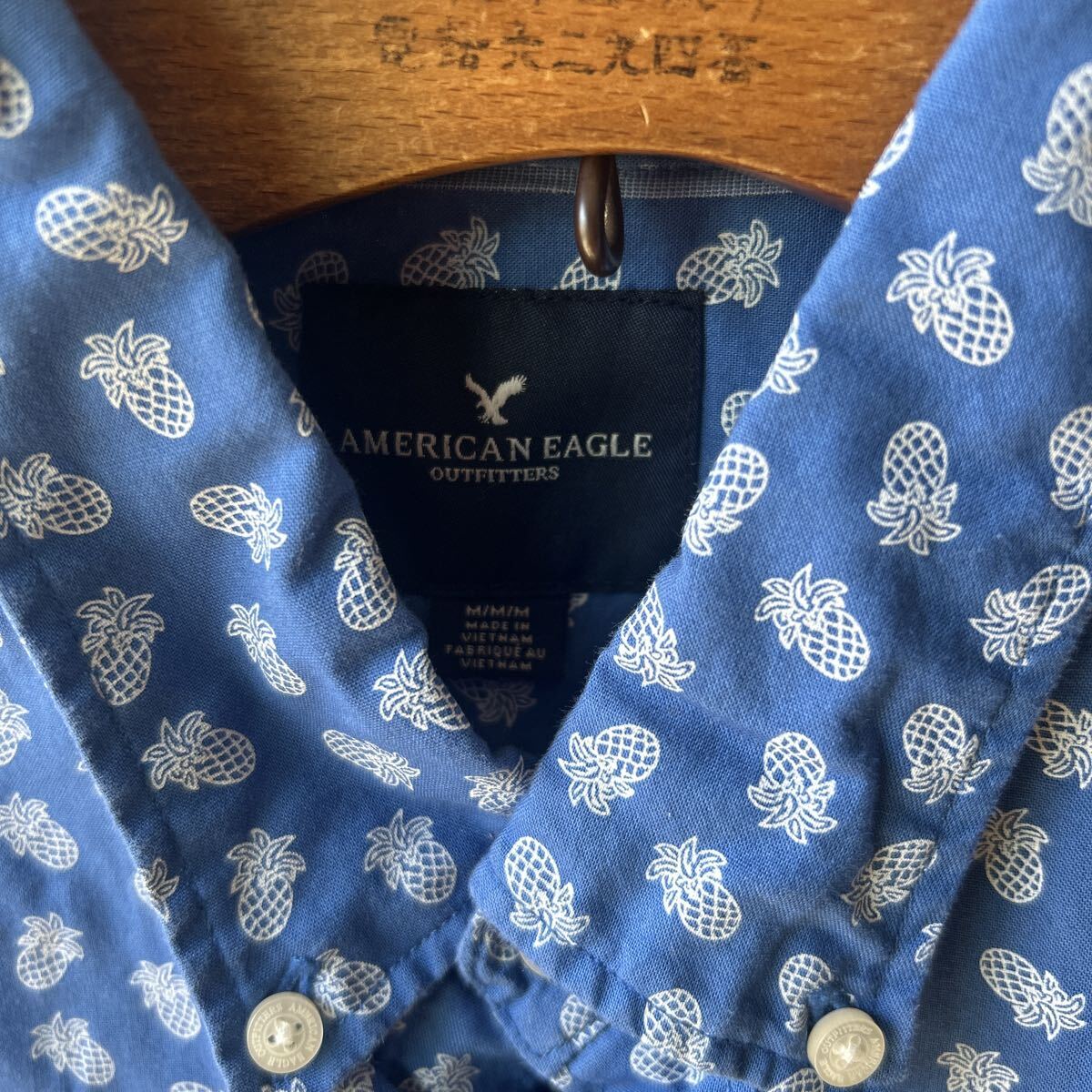 袖丈50(脇下縫目〜袖先端)多少の誤差はお許しください。良い雰囲気です。張りがある綿100 青 パイナップル ボタンダウン アロハシャツ できる限りダメージは説明させていただきますが、こちらが気づかない程度のわずかなしみ、よごれ、