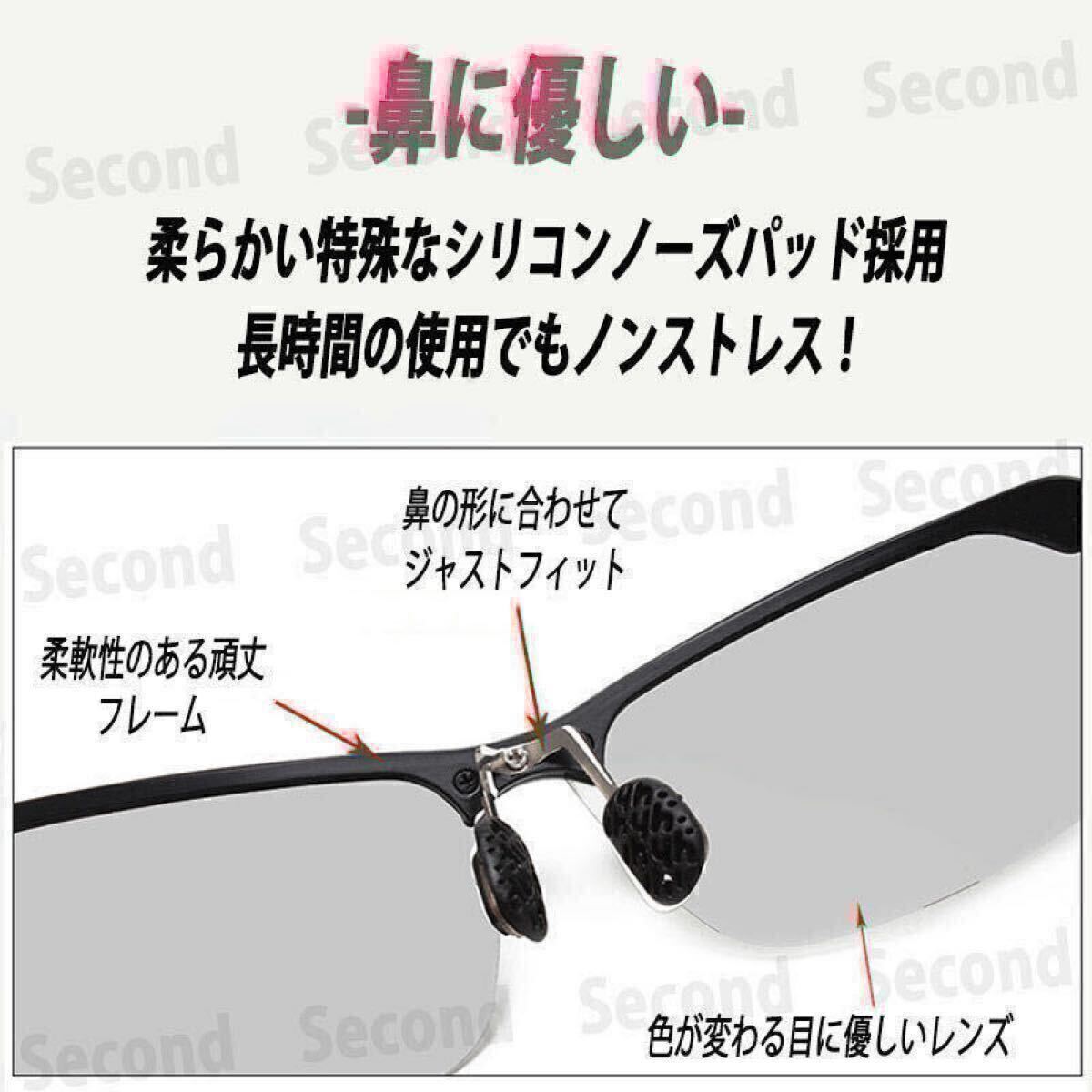 |                                     【商品内容】 カラー: ブラック 黒 レンズ: グレー 重量 : 約25g 仕様 : 偏光 調光 UVカット 紫外線カット 【商品詳細】 ・ 偏光レンズ 特殊な構造により、眩しい光や余分な光だけをカットして視界をクリアにします。 目にストレスやダメージを与える光もカット! ・ 調光レンズ 紫外線を浴びる事でレンズの色が濃く変化します。 ドライブ キャンプ 釣り ロードバイク ランニング 車 バイクなど、アウトドアに最適なレンズ! ・ ジャストフィット ヒンジが130°まで広がるため圧迫感なくノンストレスに装着可能です。 軽量素材のため、1日中掛けていても苦になりません。 ・ ライフスタイル 屋外・屋内とレンズの色が自動で切り替わり大活躍するアイテムです! おしゃれなデザインのため、普段使いにも最適です!  |             ||