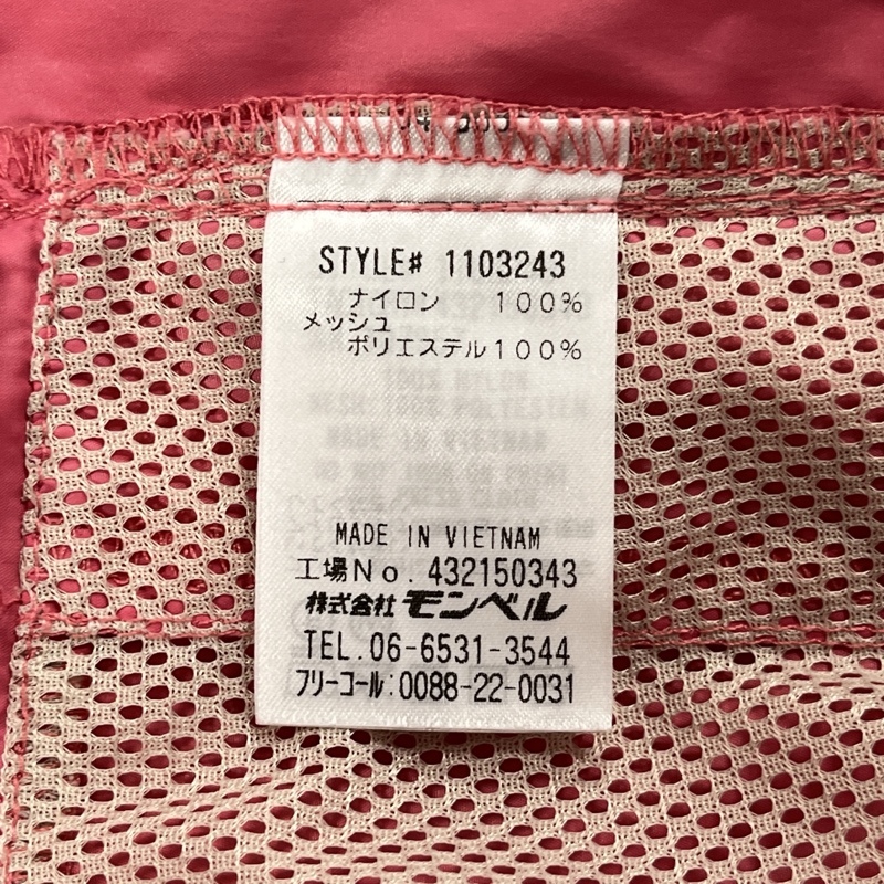 mont-bell/モンベル/ウィンドブラストパーカ/ジップアップフーデッドナイロンジャケット/軽量/胸ロゴプリント/ピンク/マウンテンパーカー